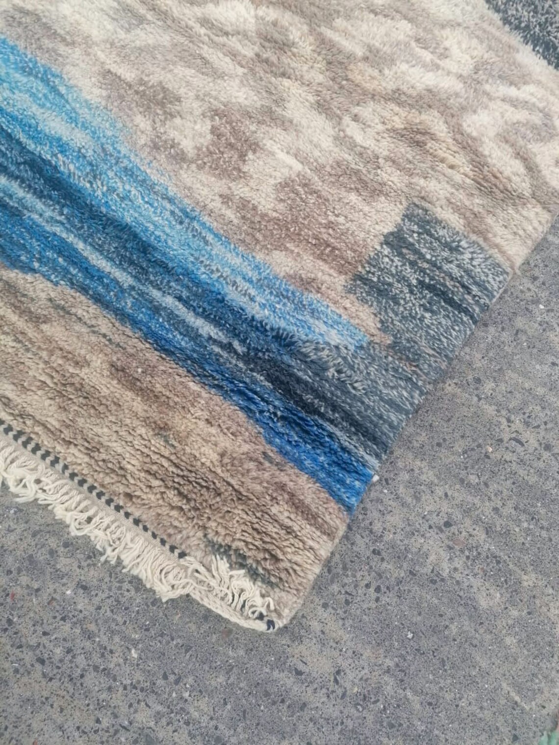 This is a delicately Handknotted rug was made in the snowy mountains of the High Atlas where temperatures can get very low, that is why it is fluffy and warm, a paradise for your feet.