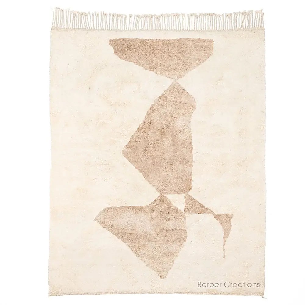 Immerse yourself in the epitome of luxury and modern allure with our Abstract Moroccan Beni Wool Rug Beige and White – DAHIA . This meticulously crafted masterpiece seamlessly blends traditional Moroccan geometric patterns with a contemporary design aesthetic. Elevate your living space with the timeless combination of peach and white tones, creating a sophisticated ambiance that complements any decor style.