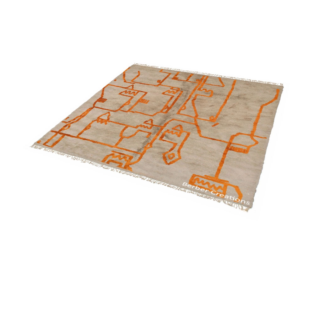 Abstract Berber Rug – Hand-Knotted Orange & Beige Moroccan Area Rug RINKON