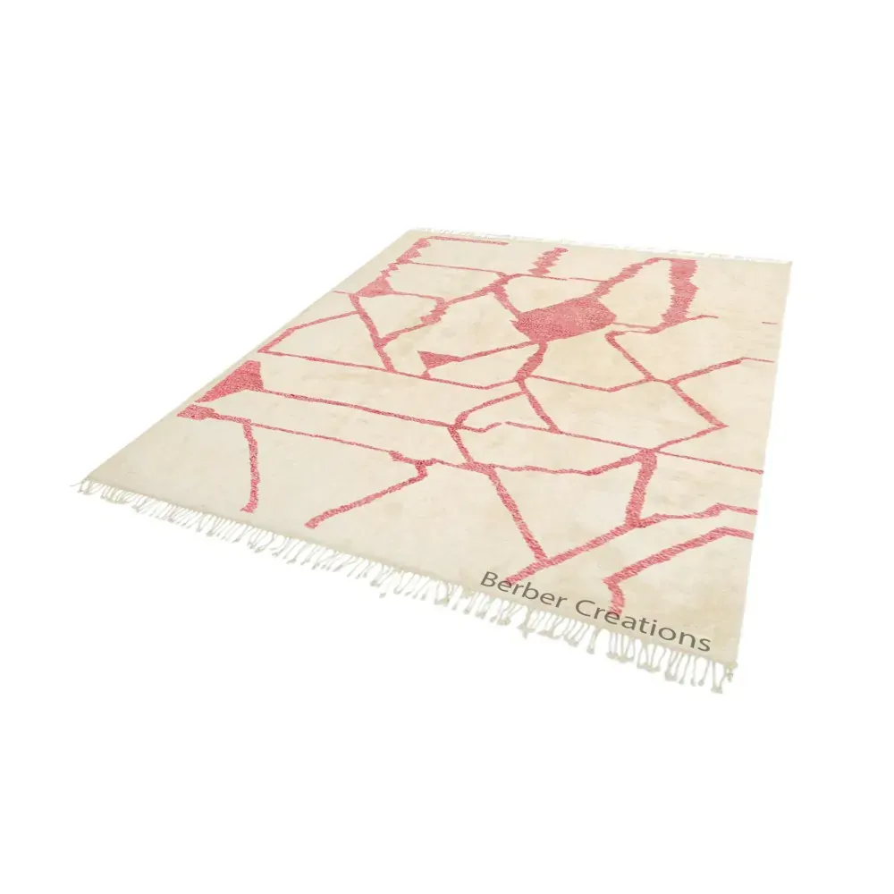 Immerse yourself in the epitome of luxury and modern allure with our Abstract Moroccan Rug Pink and White – HADIA . This meticulously crafted masterpiece seamlessly blends traditional Moroccan geometric patterns with a contemporary design aesthetic. Elevate your living space with the timeless combination of peach and white tones, creating a sophisticated ambiance that complements any decor style.
