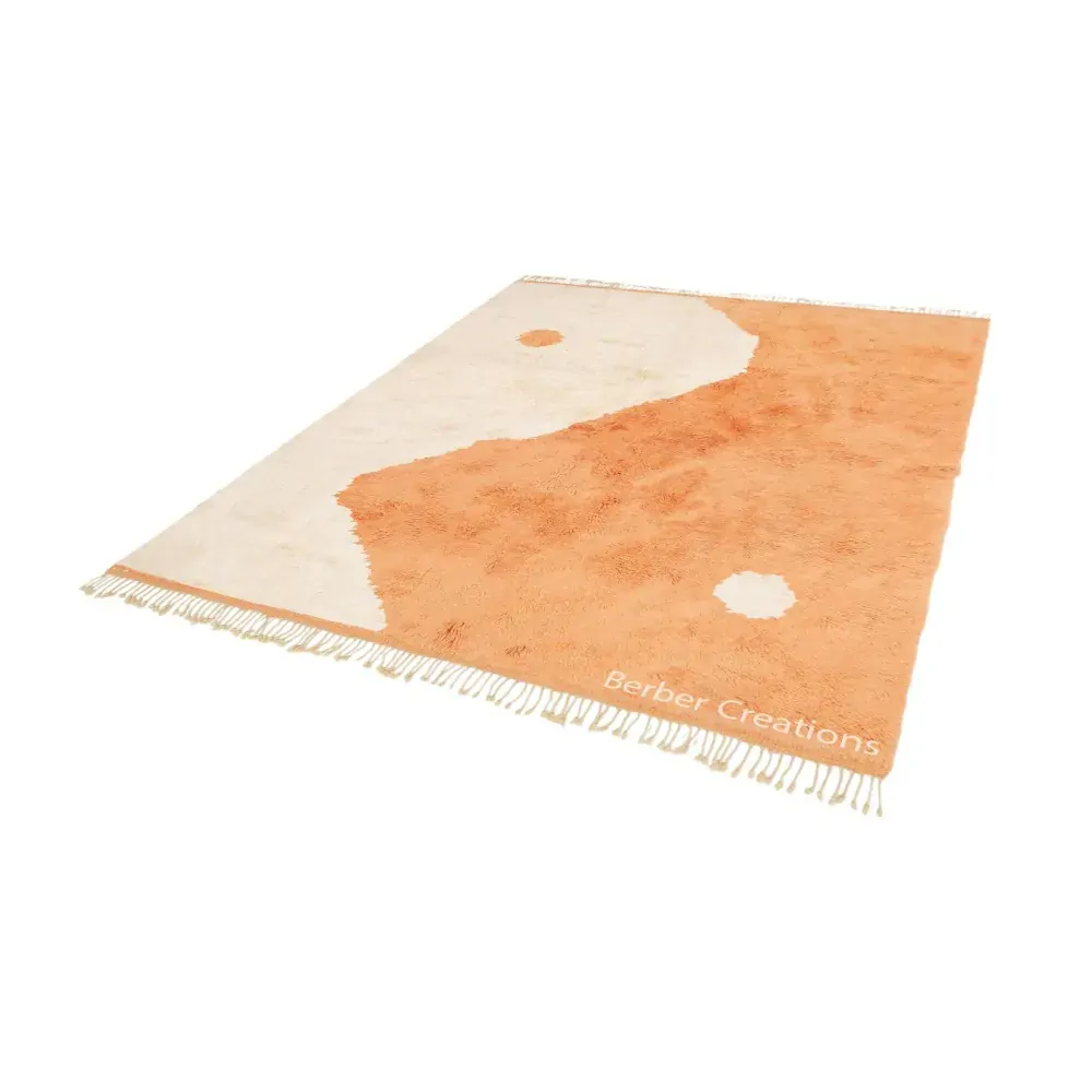 Immerse yourself in the epitome of luxury and modern allure with our Abstract Moroccan Wool Rug Peach and White – NADA . This meticulously crafted masterpiece seamlessly blends traditional Moroccan geometric patterns with a contemporary design aesthetic. Elevate your living space with the timeless combination of peach and white tones, creating a sophisticated ambiance that complements any decor style.