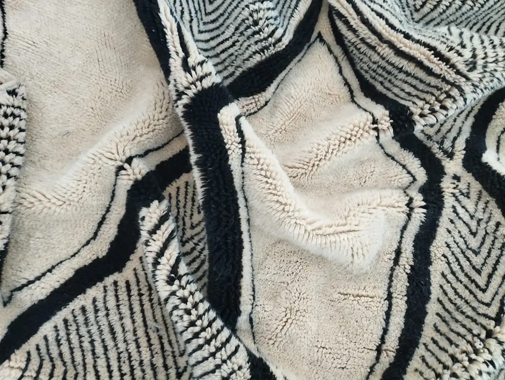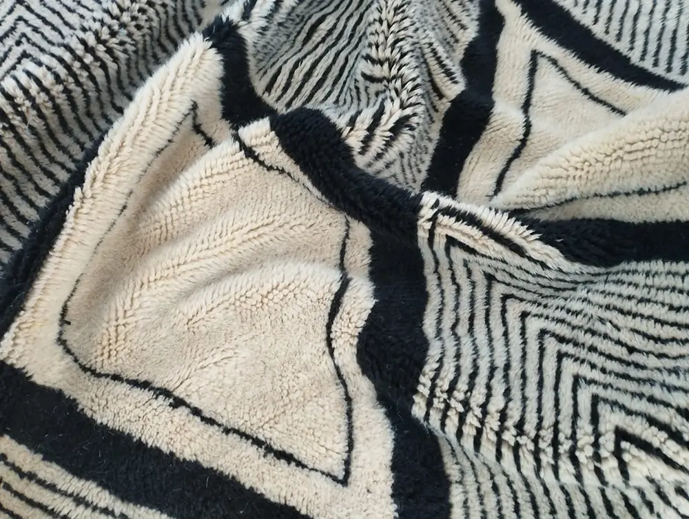 The Atlas Shifaa is an authentic Beni Mrirt masterpiece, celebrated for its exquisite, cloud-like density and opulent softness. Hand-knotted from 100% natural wool, this rug features an iconic black/dark brown diamond pattern set against a natural ivory field, bringing a piece of Moroccan heritage and unparalleled comfort to your home.