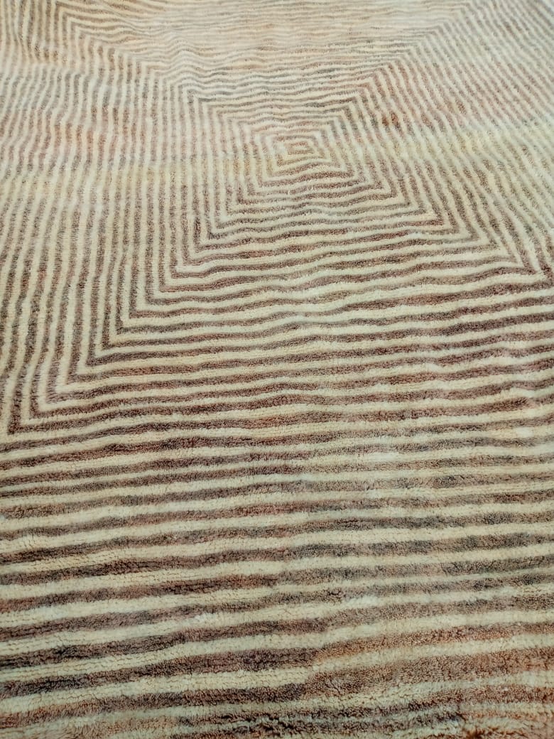 Explore our exquisite Beni Mrirt Moroccan Rug – INAR, meticulously handcrafted in the Middle Atlas Mountains using authentic organic wool and natural dyes. Our contemporary design features a plush weave with a distinctive striped beige pattern, ensuring each rug is truly unique. Choose from single or double-sided fringe options.