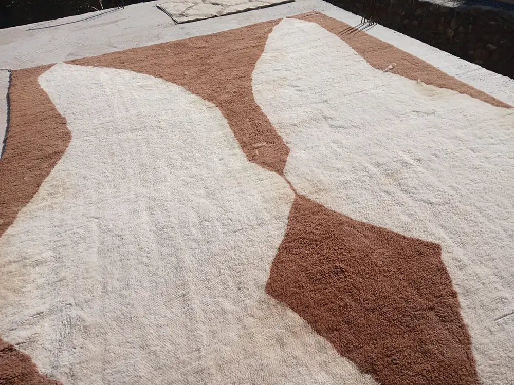 Anchor your space with the striking Nomad Star Luxury Beni Mrirt Rug. Handwoven from incredibly dense, ultra-soft wool, this rug features a bold, large-scale geometric diamond pattern in rich Brown and natural Cream. It’s an authentic, high-end piece that brings dramatic contrast and geometric focus to any modern or bohemian room.