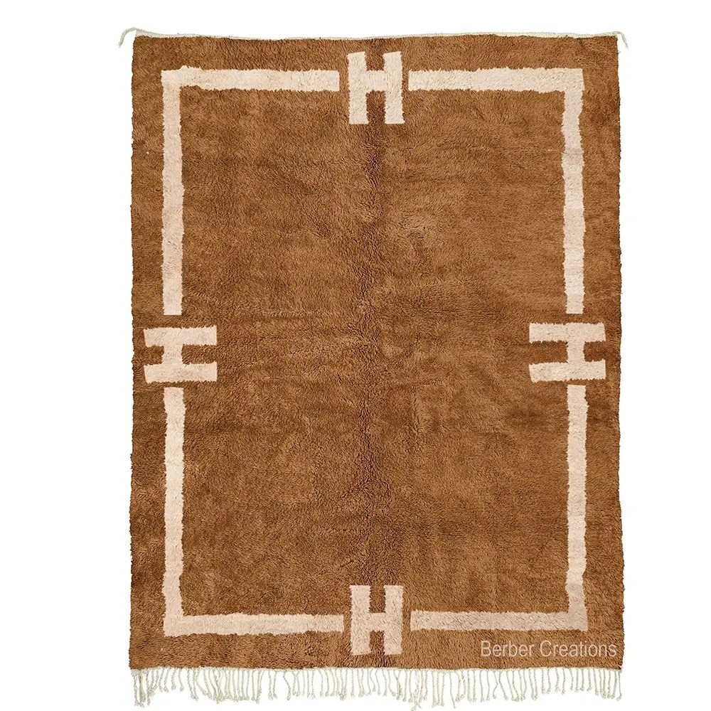 The “Berber Gate” Hand-Woven Moroccan Beni Ourain Rug in Brown & Cream