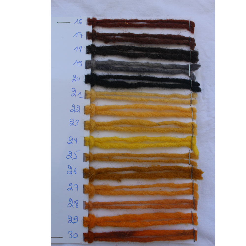 Our Yarn Sample Package included 10 yarn colors of Wool. Each sample is labeled with color codes for your reference.