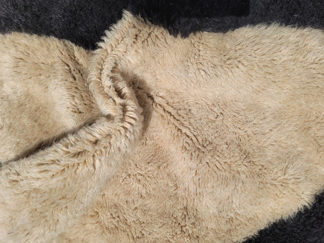 Experience the “Quiet Luxury” of an authentic black and beige Beni M’rirt rug. This Bauhaus Geometric Beni M’rirt Rug combines modernist architectural blocks with the finest Middle Atlas craftsmanship. Hand-knotted using a traditional double-knot technique, its plush, high-density pile features bold forms in inky black and sandy beige against a natural ivory ground. Perfect for minimalist interiors, it offers a sophisticated, velvety texture that is both durable and timeless.