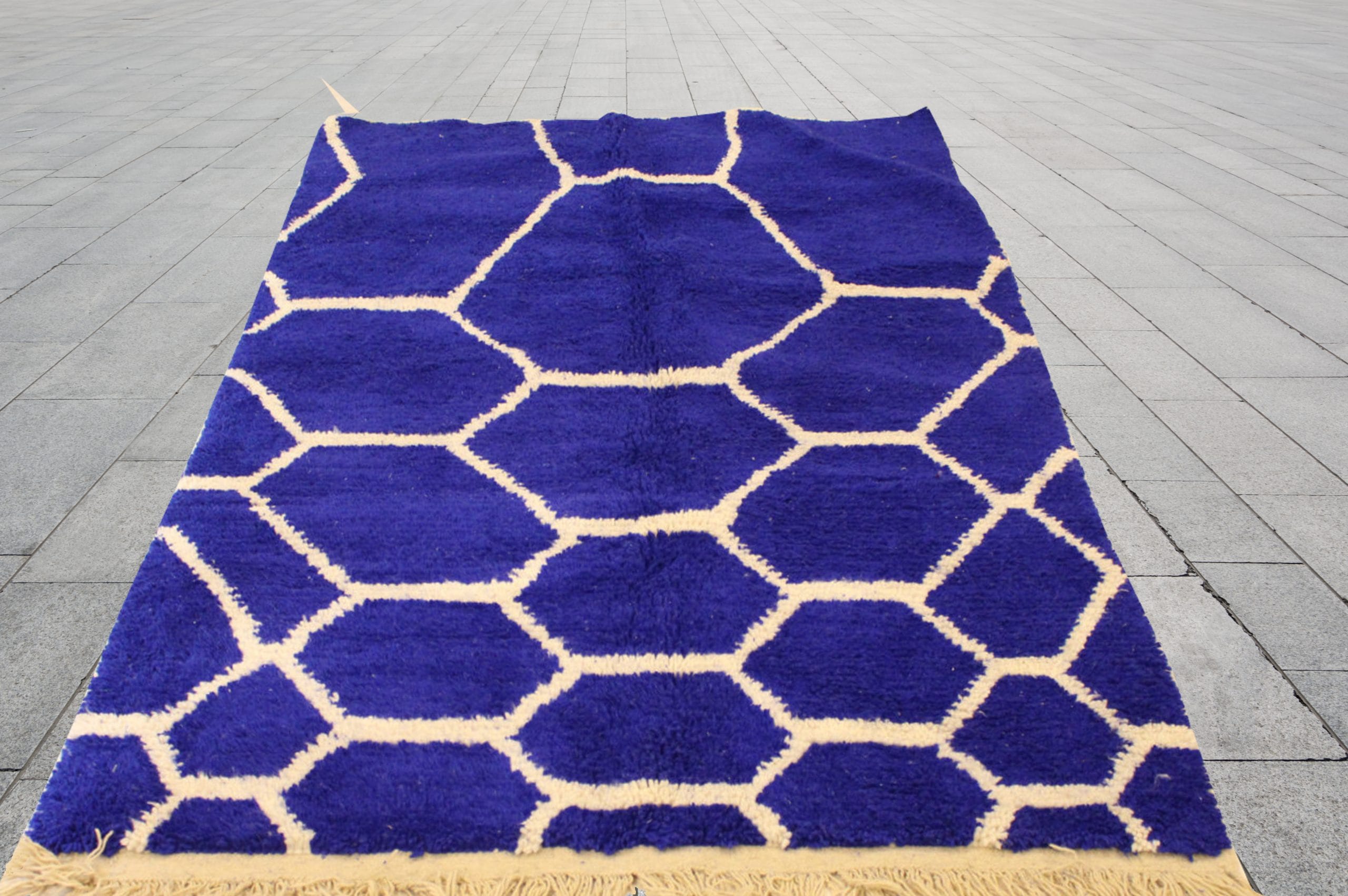 When you’re looking for something plush for your feet or to keep you warm at night, these gorgeous Blue Beni Ourain rug – is ideal! this Beni Ourain Rug is the perfect accent to your Moroccan bohemian decor.
