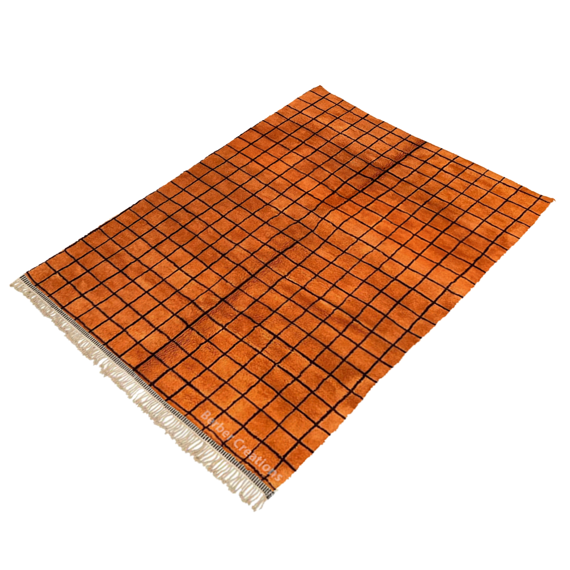 Burnt orange Moroccan Rug- Black Lines Grid Pattern