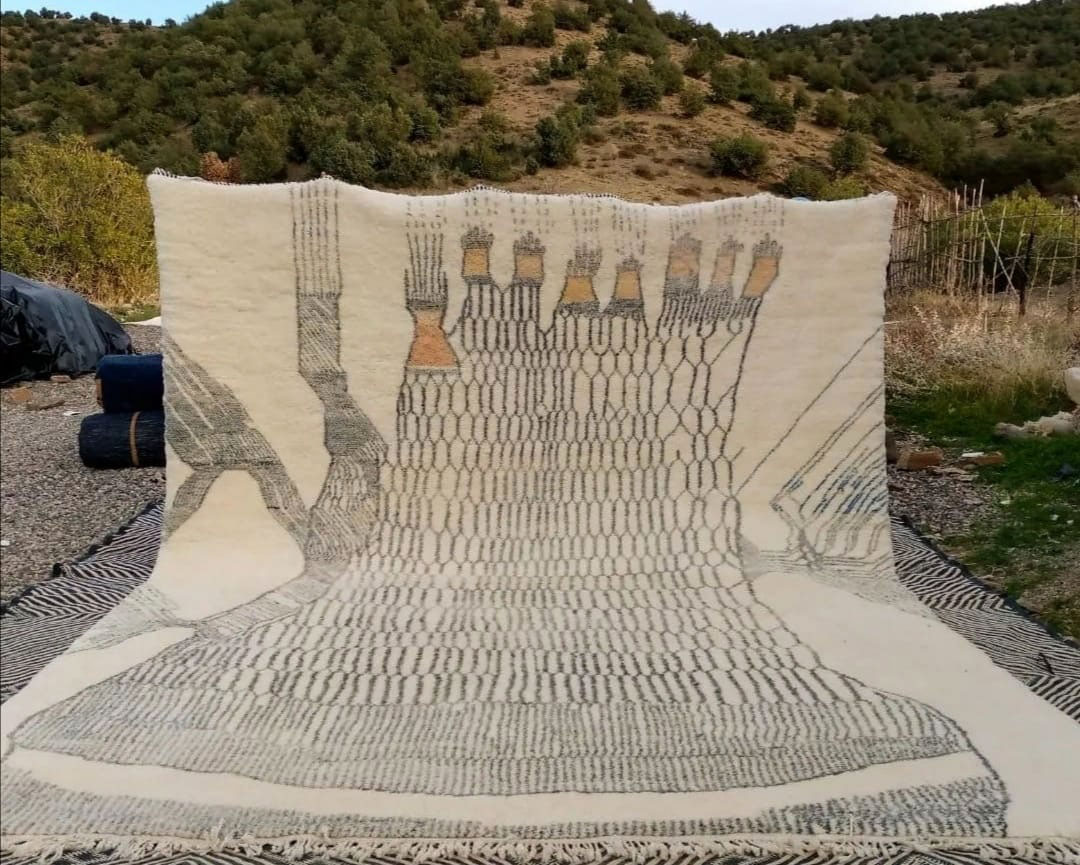 We are committed to making this Beni Ourain Moroccan rug for you within an average of 4 to 6 weeks. We use genuine Moroccan lambswool; professional Berber Moroccan women artists will be working on your order. This will be a Hand-knotted Moroccan rug,