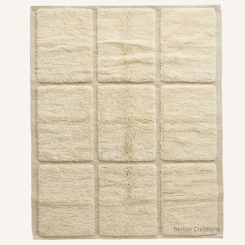 Architectural softness, hand-knotted to your exact dimensions. The Alabaster Grid reimagines minimalist design through a 3D lens. Hand-knotted in our Atlas workshop, this tone-on-tone cream rug features nine sculptural wool blocks on a flat-weave base. Crafted from 100% premium unbleached wool, it is the ultimate anchor for Japandi, Modern Minimalist, and Architectural homes.