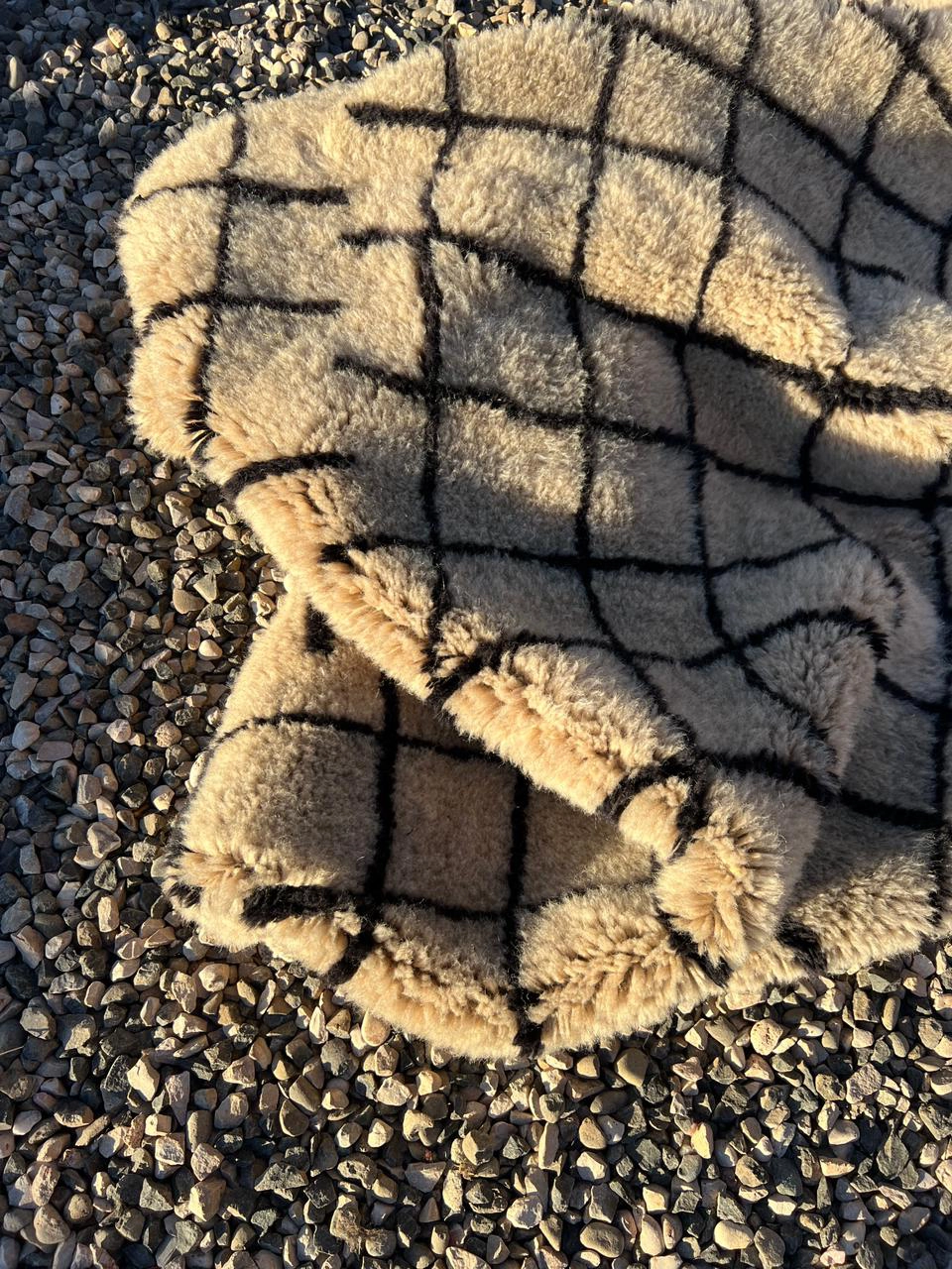 Double Grid Beige & Black Beni M’rirt Rug – Hand-Knotted Luxury Moroccan Wool