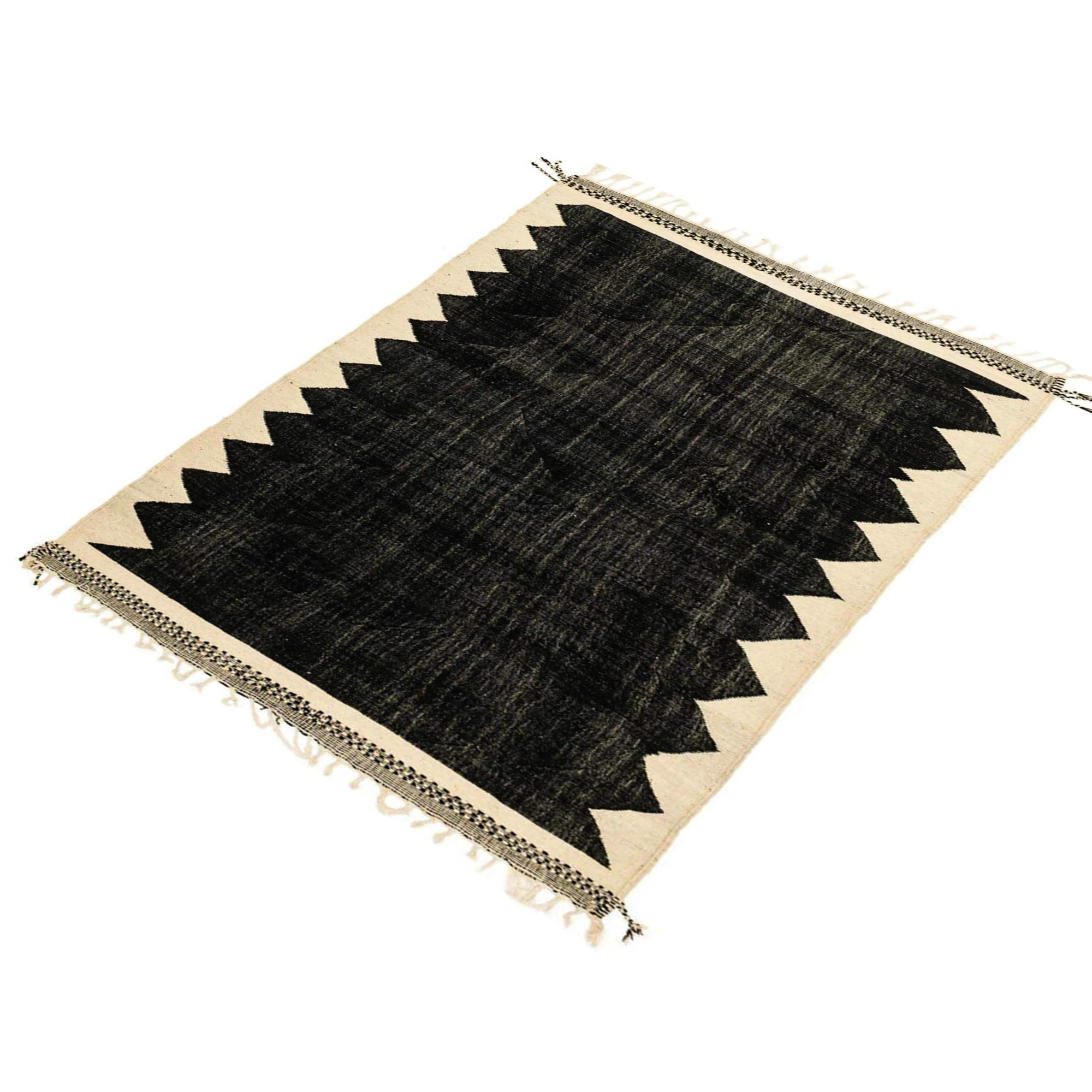 Elevate your living space with the timeless beauty and authentic craftsmanship of our Moroccan Flatweave Wool Rug, now available in a stunning black and white pattern. Handwoven in Morocco by skilled artisans using organic wool, this rug captures the traditional elements that have made Moroccan kilim rugs highly coveted.