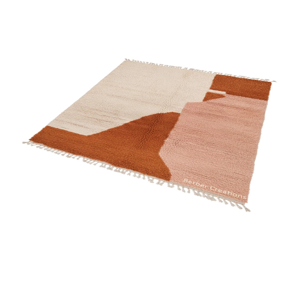 Handmade Moroccan Beni Ourain Shag Rug: Abstract Terracotta & Blush Wool Rug ILYANA