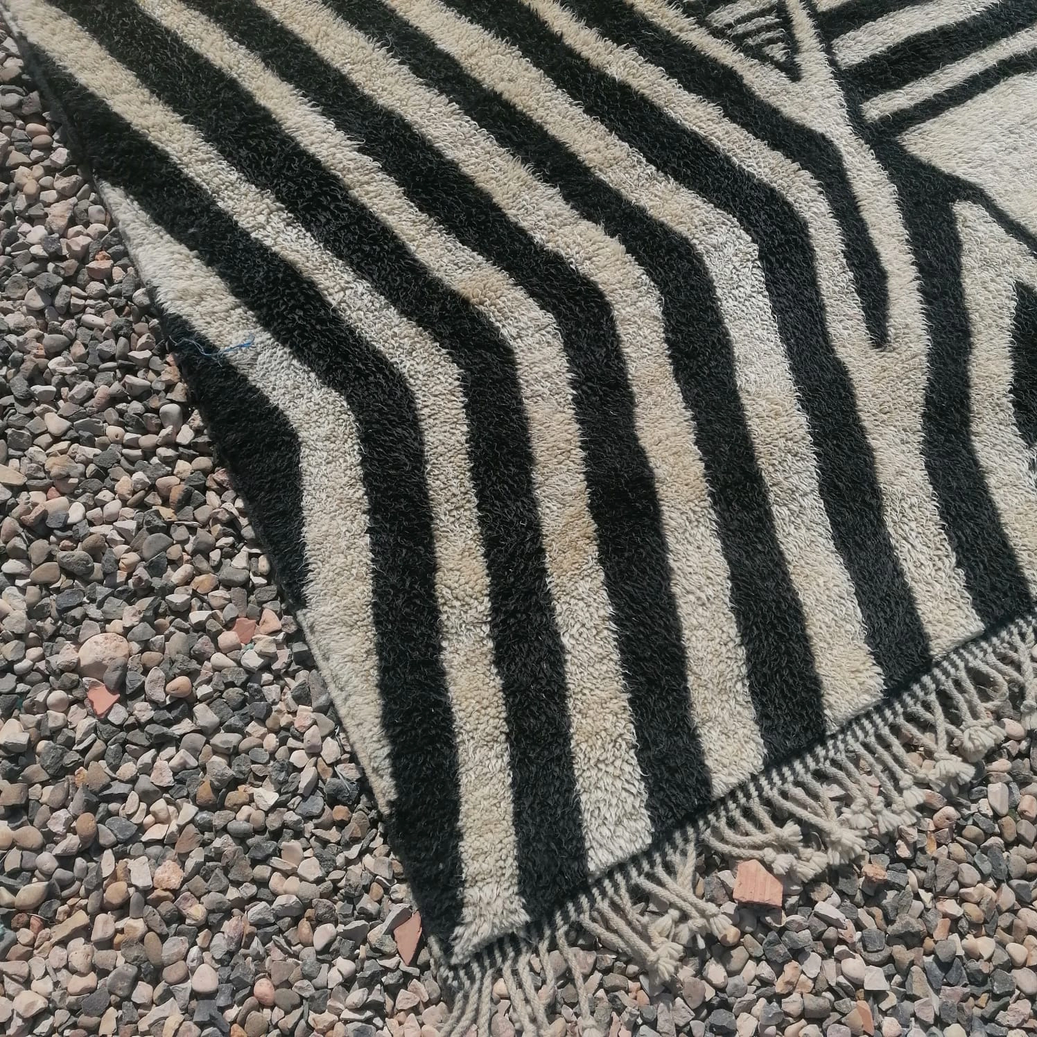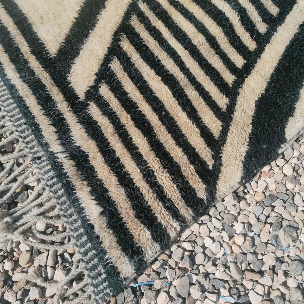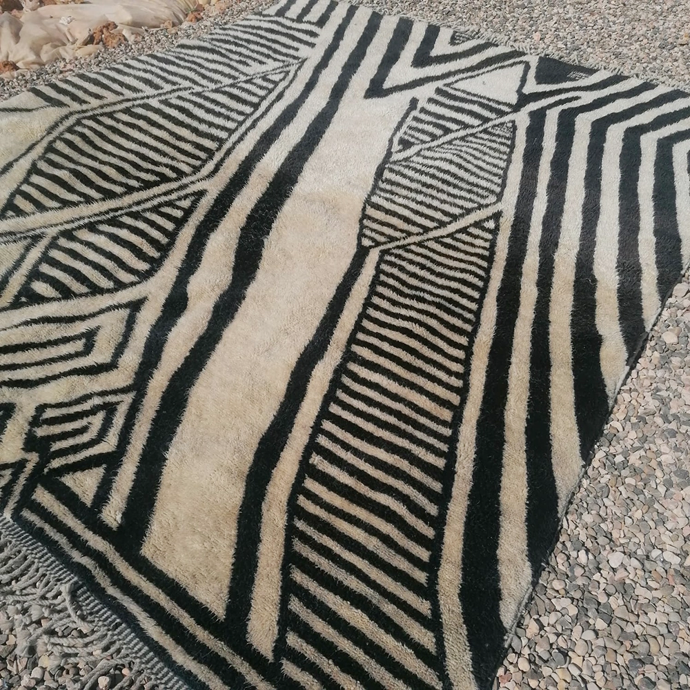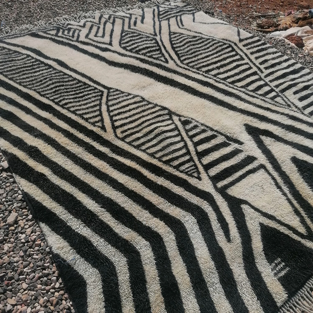 Handwoven Black and White Zebra Beni Wool Rug