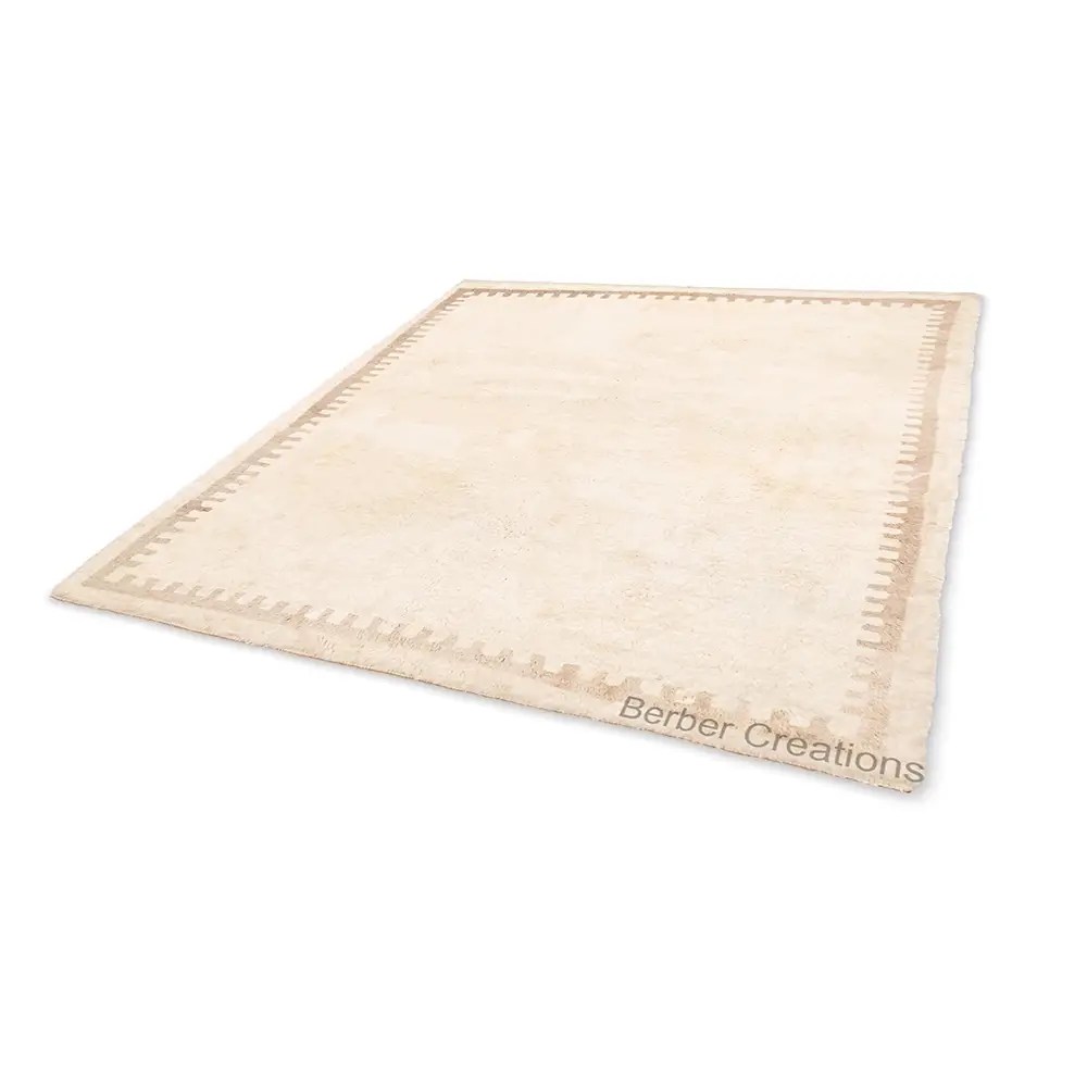 Discover “Juda,” an authentic Moroccan Berber rug meticulously hand-woven from plush wool. Its elegant border offers a clean, modern design that adds rich texture and sophisticated style to any room.