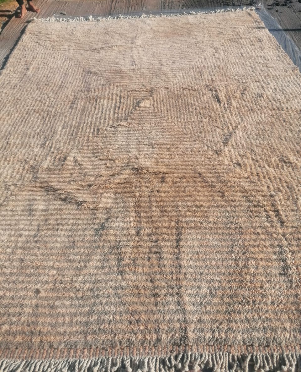 This stunning Moroccan Luxury Beni Mrirt Wool Rug is completely hand-knotted, made of 100% sheep wool. The soft Beni Ourain rug is perfect for the living room or lounge area.