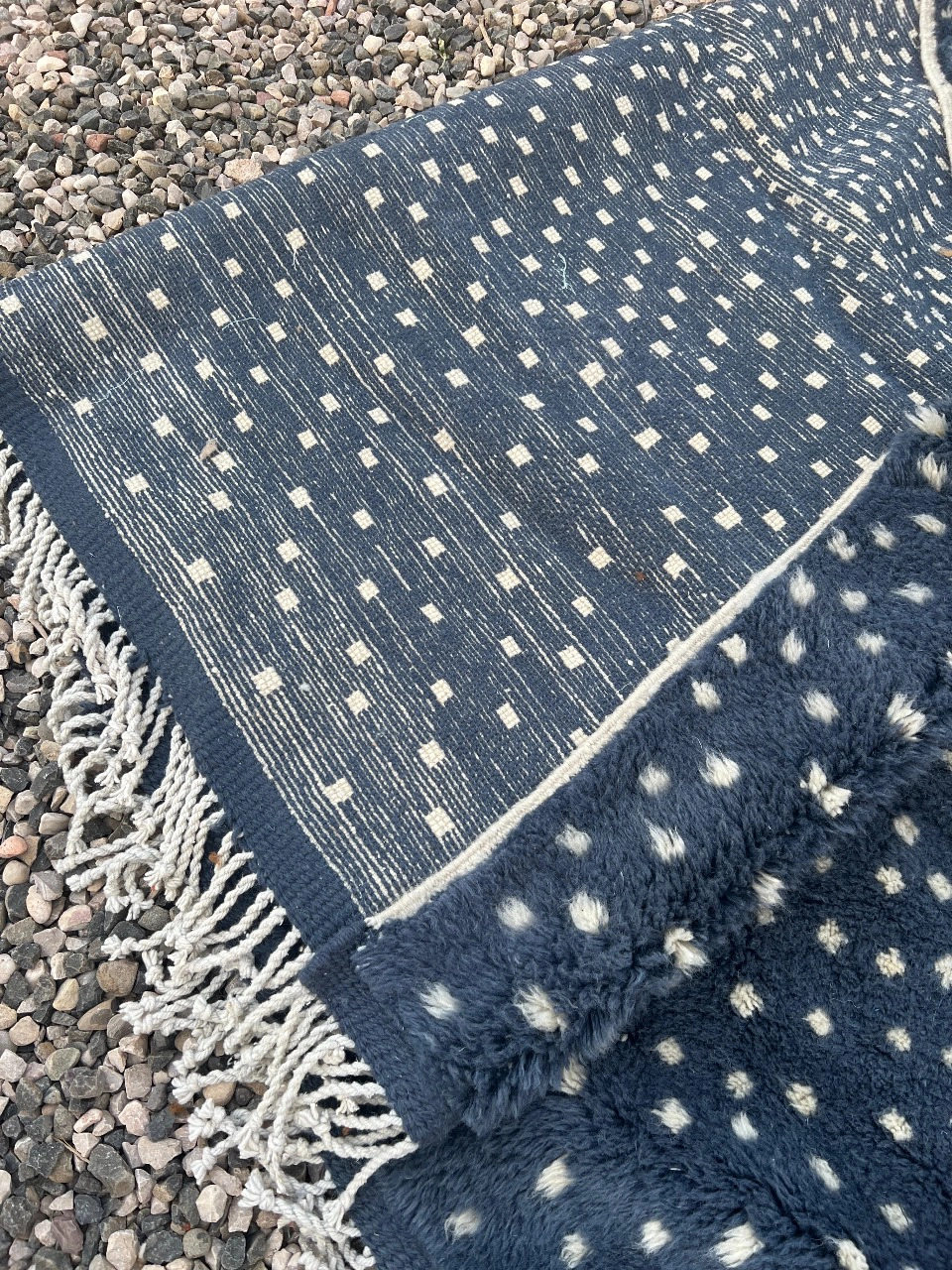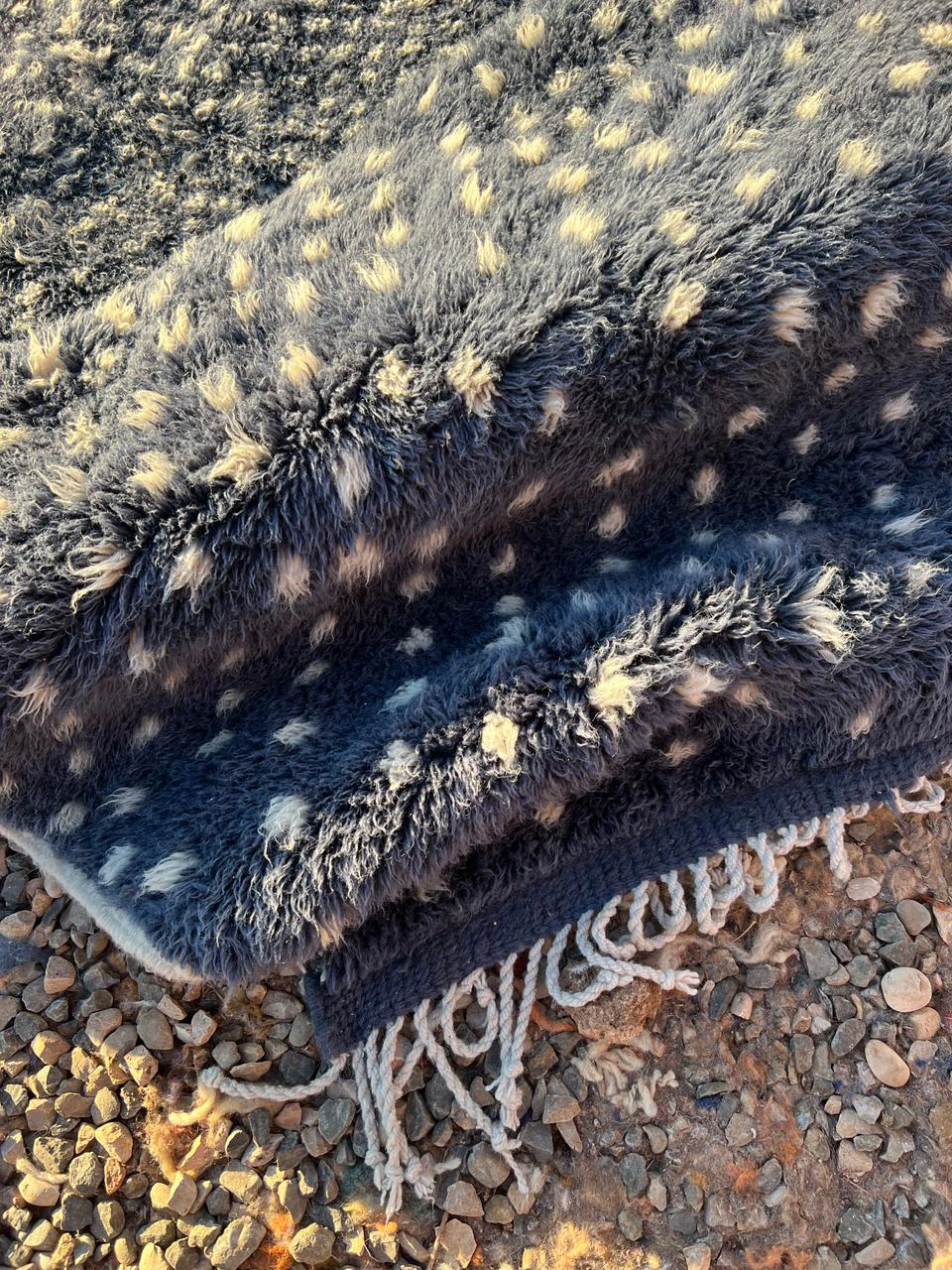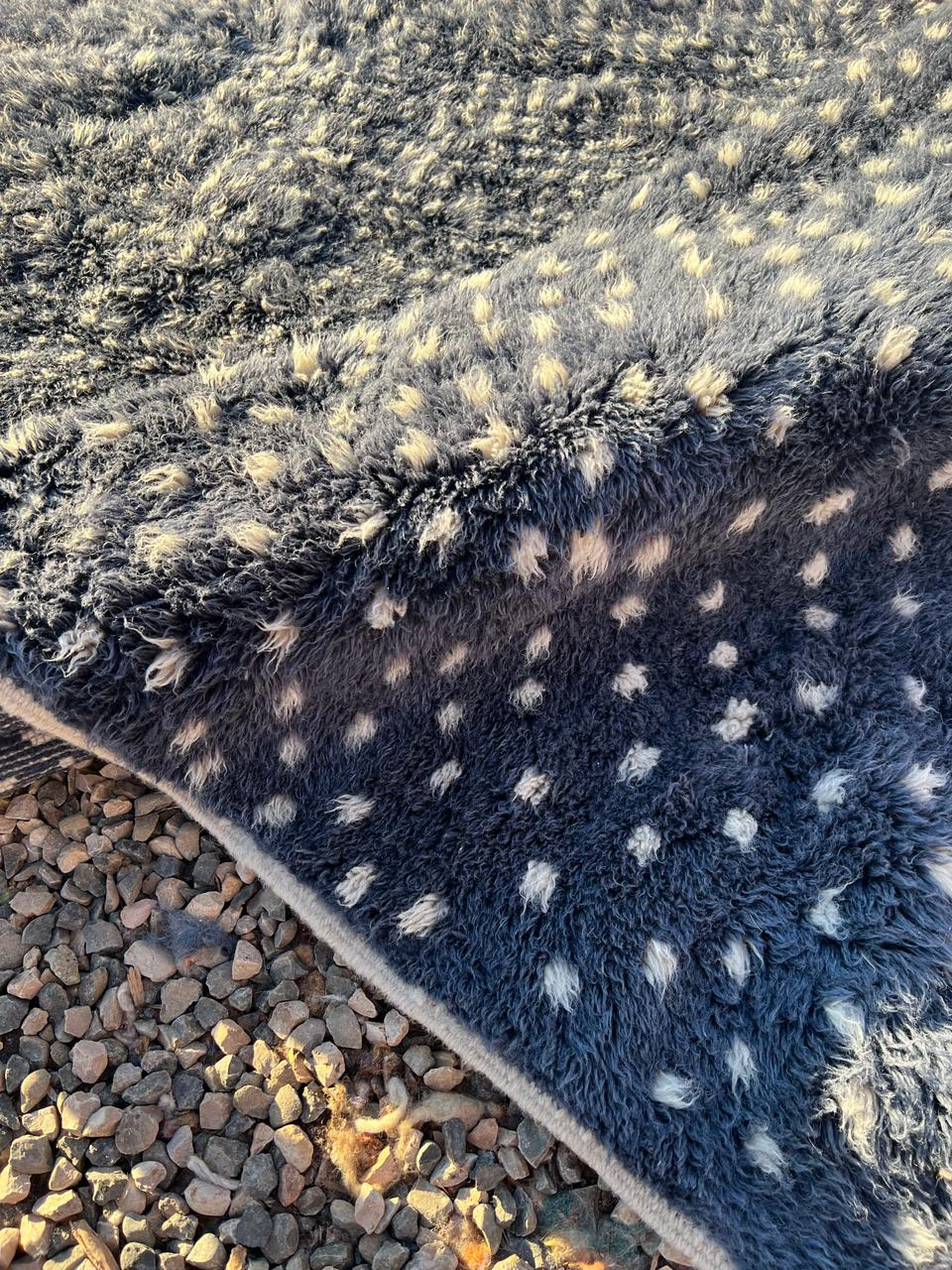 The Midnight Galaxy | Custom Dotted Moroccan Rug – Indigo Blue & Cream Wool