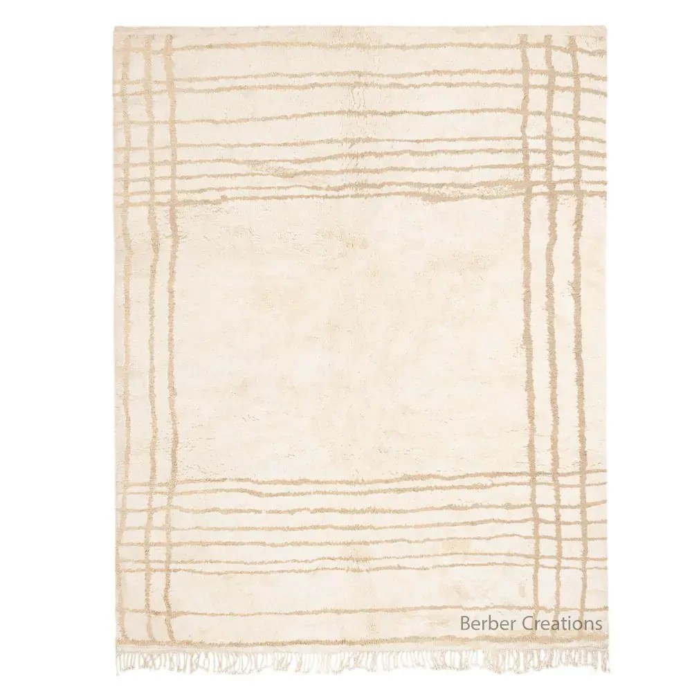 Immerse yourself in the epitome of luxury and modern allure with our Minimalist Moroccan Berber rug – RUBA . This meticulously crafted masterpiece seamlessly blends traditional Moroccan geometric patterns with a contemporary design aesthetic. Elevate your living space with the timeless combination of white and beige tones, creating a sophisticated ambiance that complements any decor style.