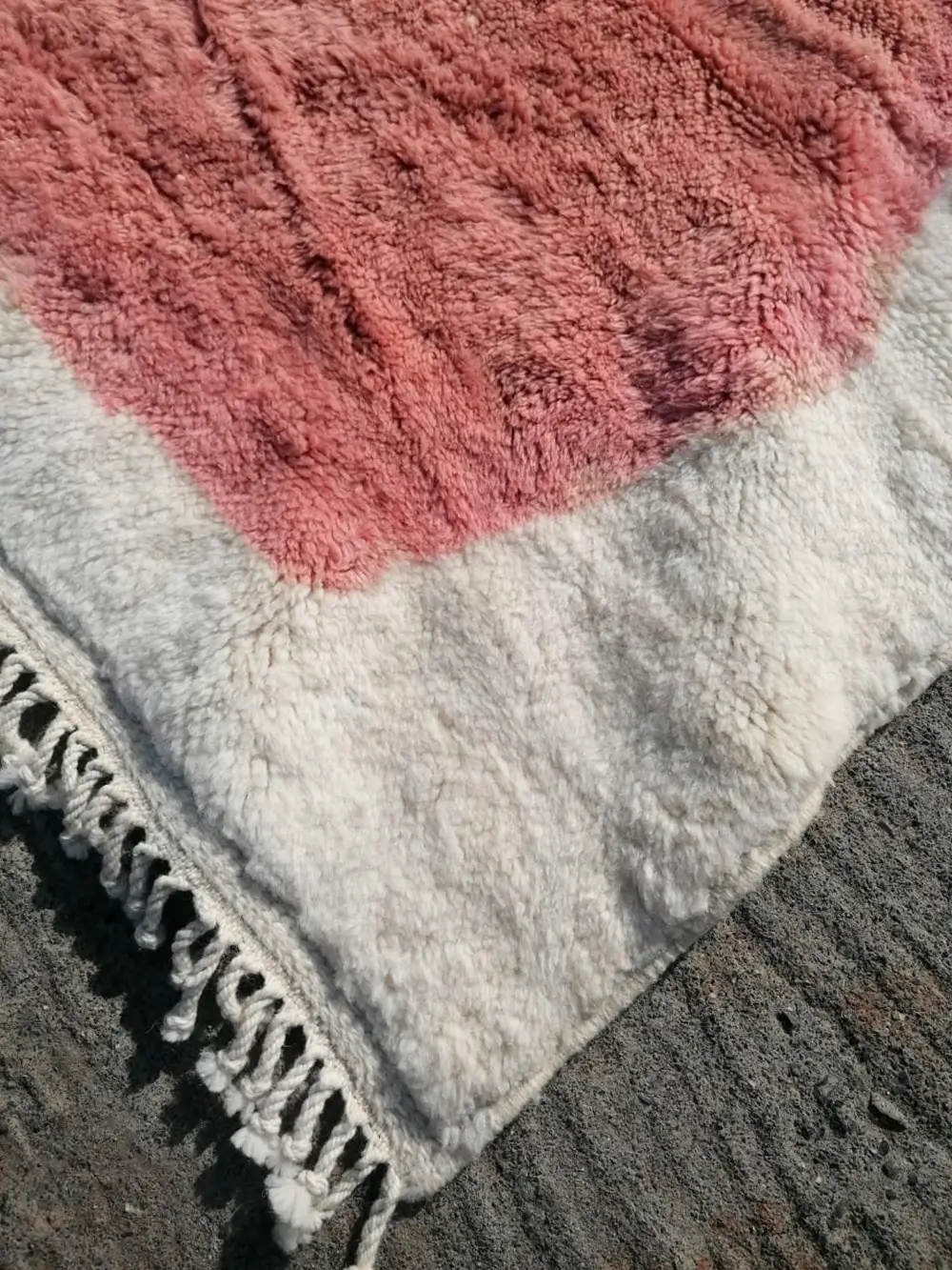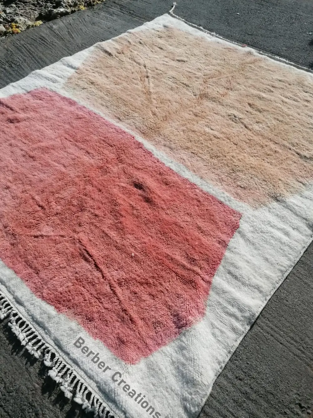 Immerse yourself in the epitome of luxury and modern allure with our Moroccan Abstract Berber Rug Pink and Peach- DIJA . This meticulously crafted masterpiece seamlessly blends traditional Moroccan geometric patterns with a contemporary design aesthetic. Elevate your living space with the timeless combination of pink and white tones, creating a sophisticated ambiance that complements any decor style.