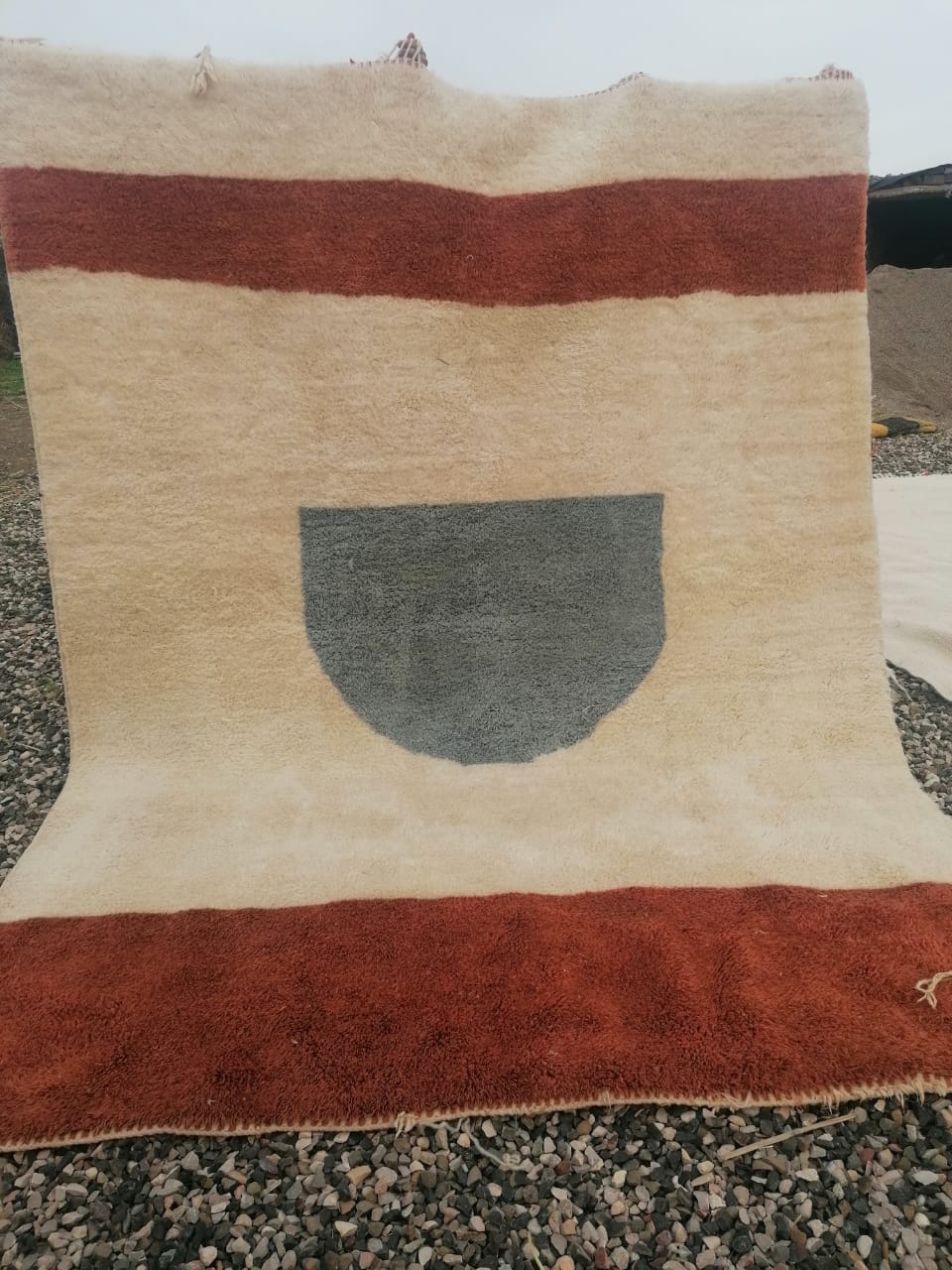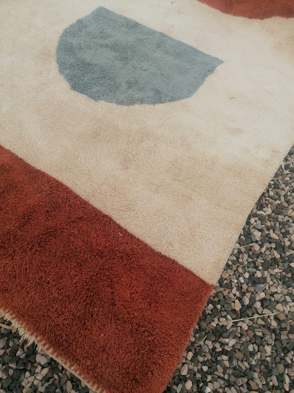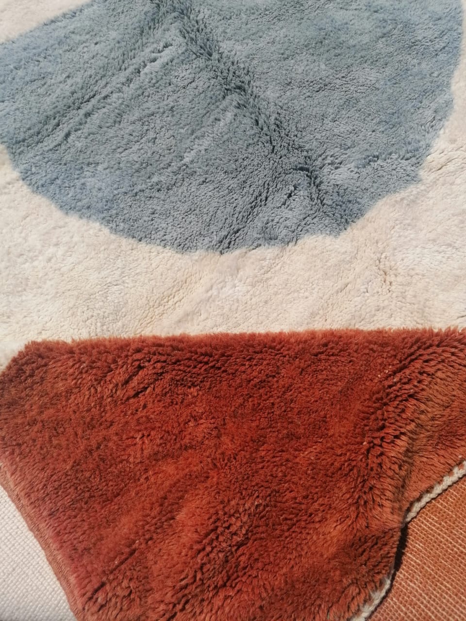 This rug is unique and is entirely handmade out of natural wool tinted thanks to natural organic dye which makes it very soft and easy to care for.