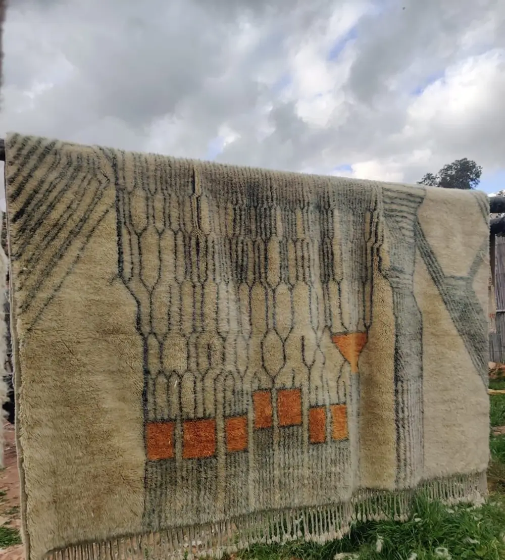 Moroccan Beni Mrirt Wool Rug in Cream, Gray & Orange – “Atlas Columns”