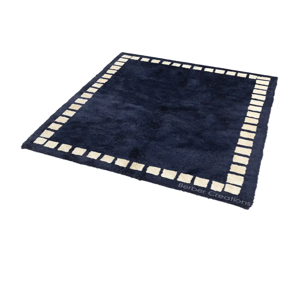 Moroccan Beni Ourain Wool Rug in Navy Blue and White Squares – TIFAWT