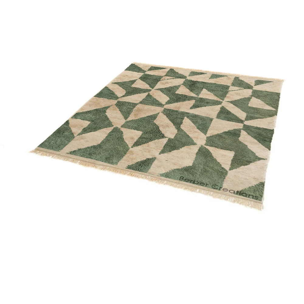 Introducing the Moroccan Beni Wool Rug – a true embodiment of luxury and contemporary elegance. Crafted with the utmost precision and care, this rug seamlessly merges tradition and modern design, making it a perfect addition to any living space. With its neutral color palette, featuring serene shades of white, beige, green, and black, this rug exudes a natural, earthy vibe while maintaining a sleek and modern aesthetic.