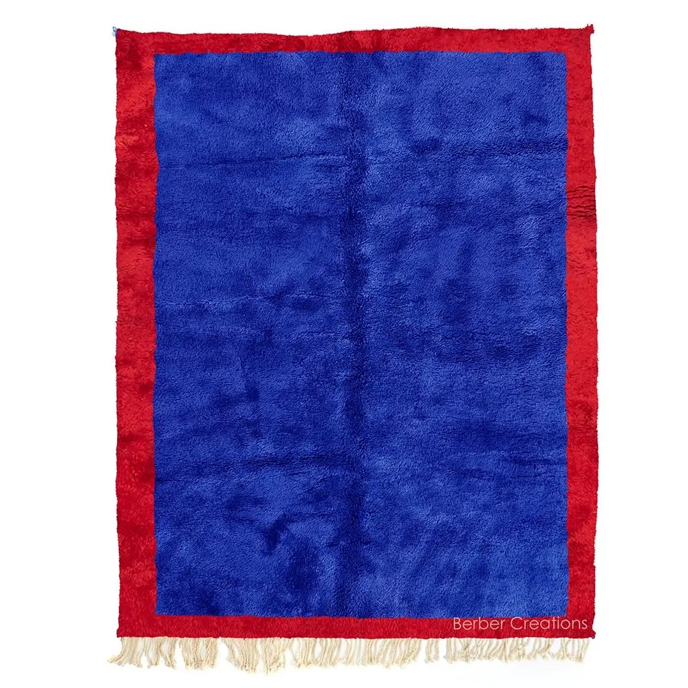 Immerse yourself in the epitome of luxury and modern allure with our Moroccan Blue Rug with Red Border. This meticulously crafted masterpiece seamlessly blends traditional Moroccan geometric patterns with a contemporary design aesthetic. Elevate your living space with the timeless combination of peach and white tones, creating a sophisticated ambiance that complements any decor style.