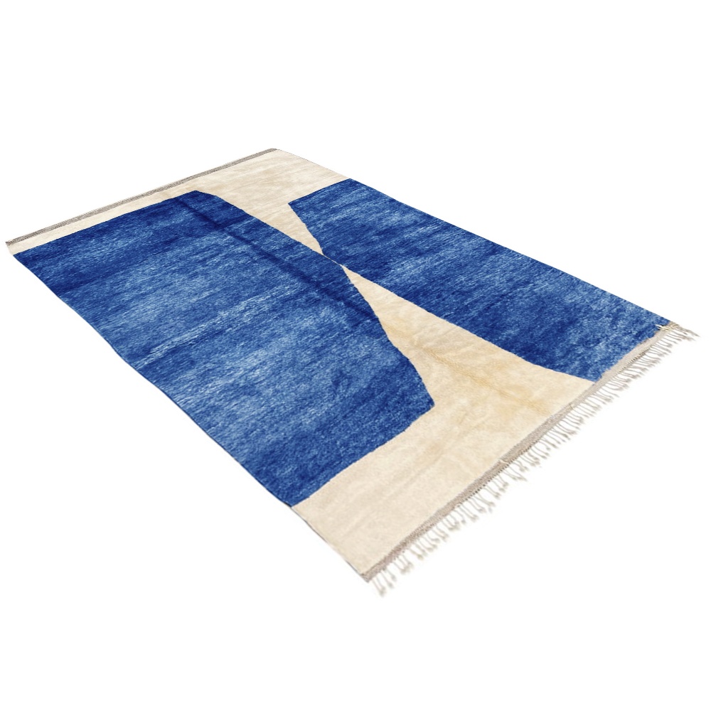 Moroccan Contemporary Wool Rug Blue and White