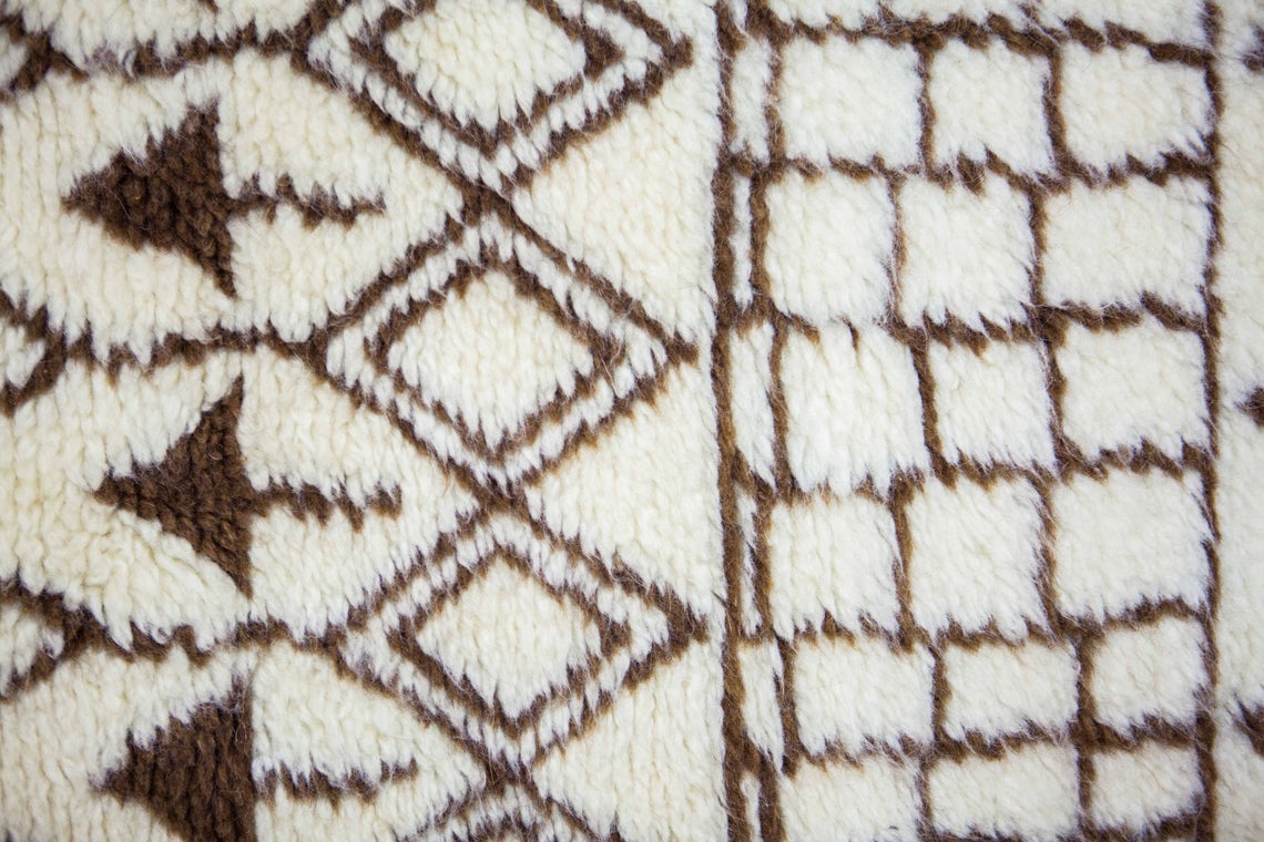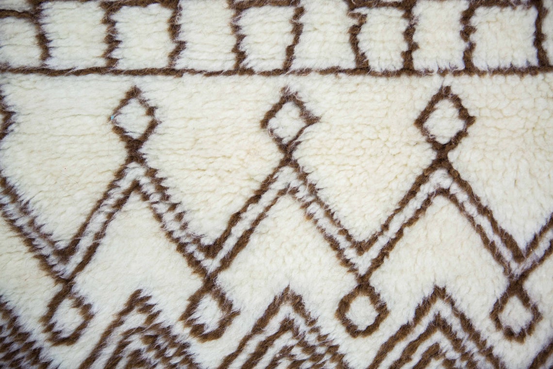 • Versatile Design: The cream and tribal brown combination ensures this Beni Ourain rug complements various interior styles, from traditional to contemporary.