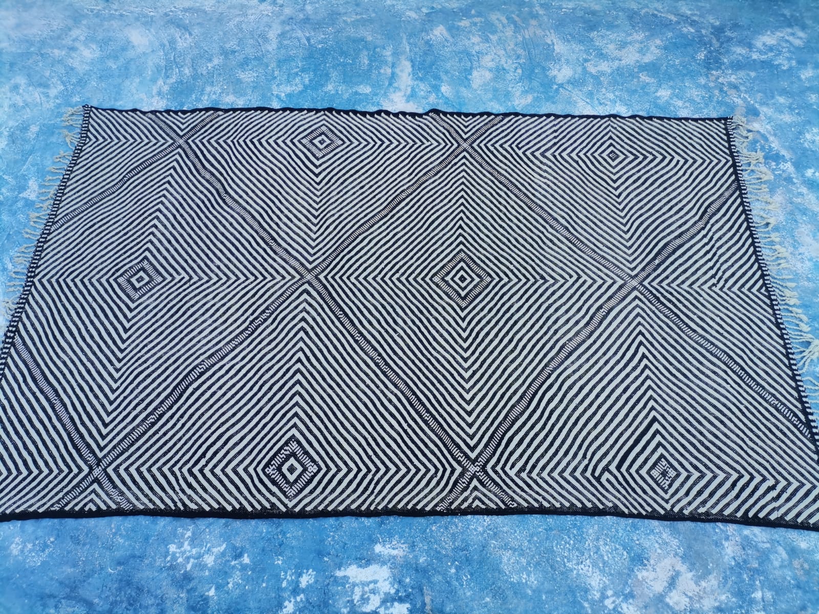 At our core, we are dedicated to preserving the rich Moroccan weaving traditions, and our Moroccan Kilim Wool Rug in black and white stripes is a testament to our commitment to quality, authenticity, and customer satisfaction. Transform your living space with a piece of art that transcends time and style, and experience the magic of Moroccan craftsmanship in your own home.