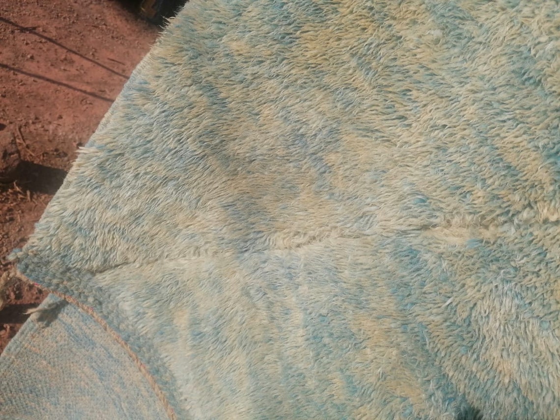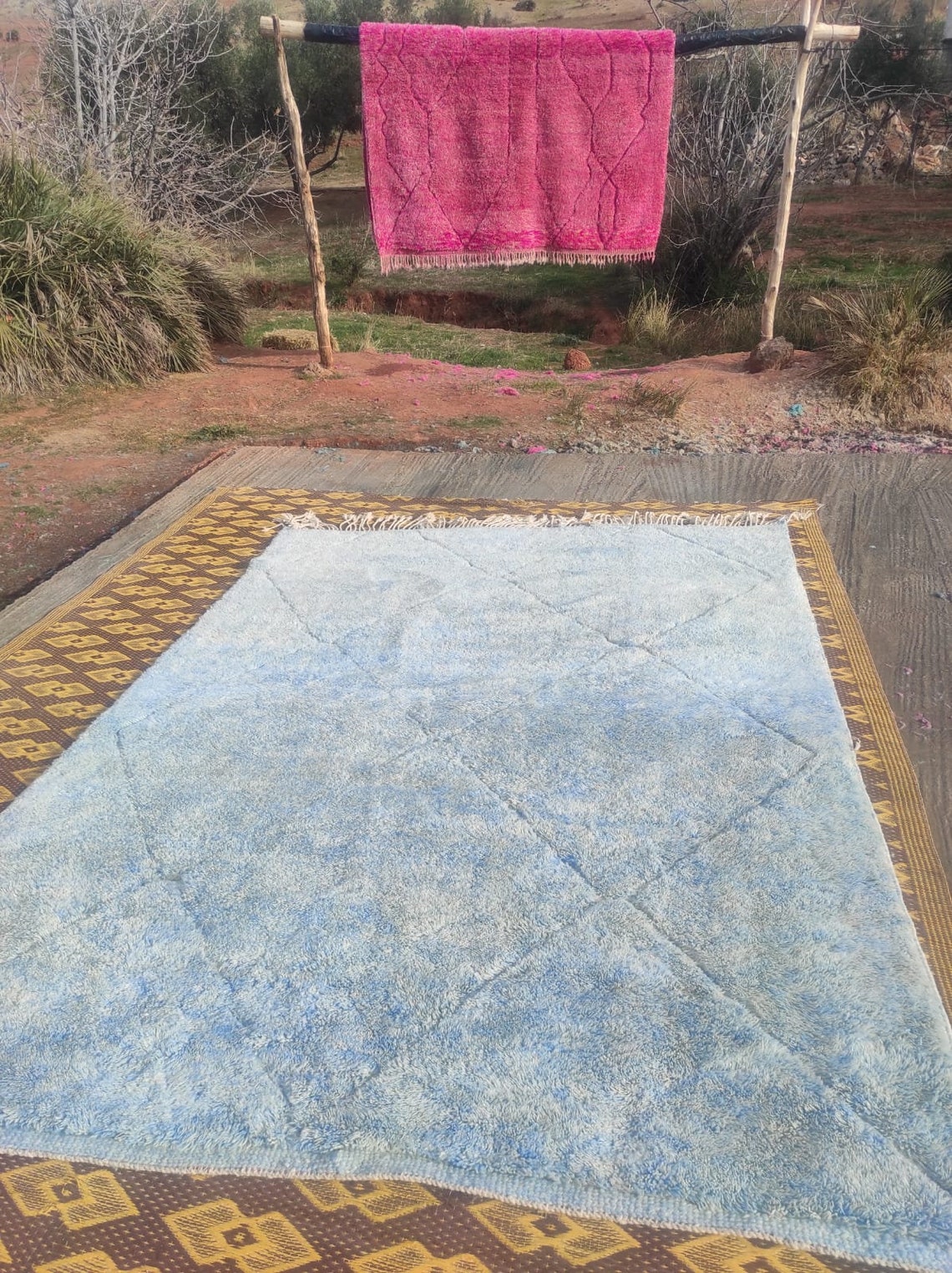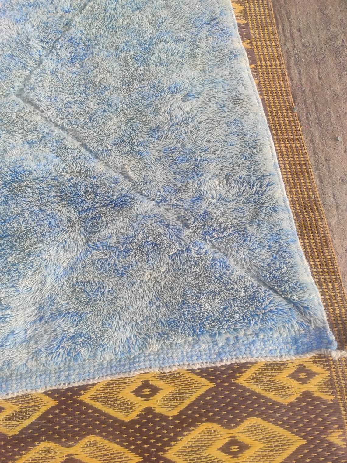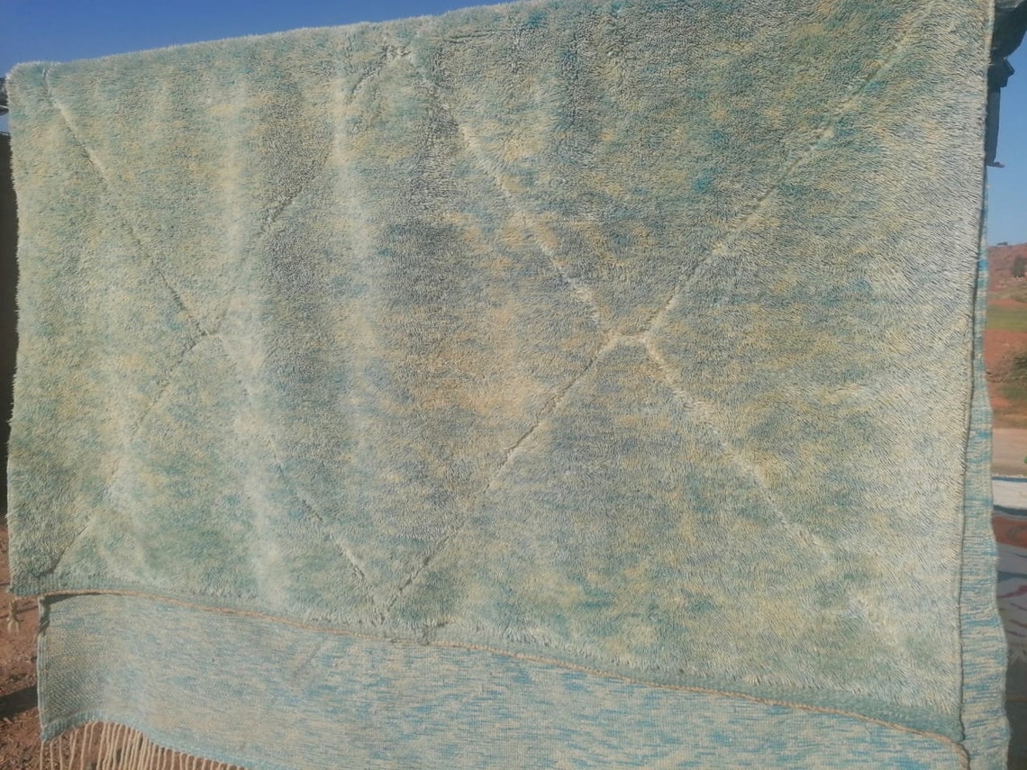 This Gorgeous Moroccan light blue rug was made by a woman of the Berber tribes in the High Atlas Mountains of Morocco.
