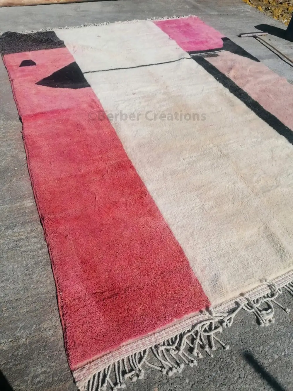 Immerse yourself in the epitome of luxury and modern allure with our Pink Moroccan Abstract Berber Rug . This meticulously crafted masterpiece seamlessly blends traditional Moroccan geometric patterns with a contemporary design aesthetic. Elevate your living space with the timeless combination of pink and white tones, creating a sophisticated ambiance that complements any decor style.