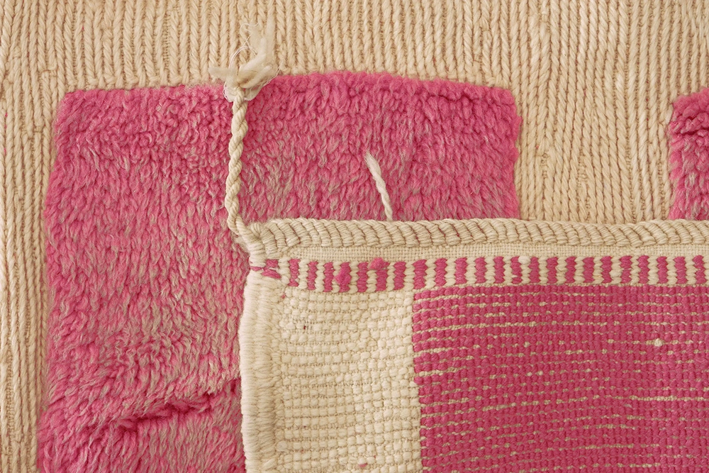 Immerse yourself in the epitome of luxury and modern allure with our Pink Moroccan Beni Rug . This meticulously crafted masterpiece seamlessly blends traditional Moroccan geometric patterns with a contemporary design aesthetic. Elevate your living space with the timeless combination of peach and white tones, creating a sophisticated ambiance that complements any decor style.