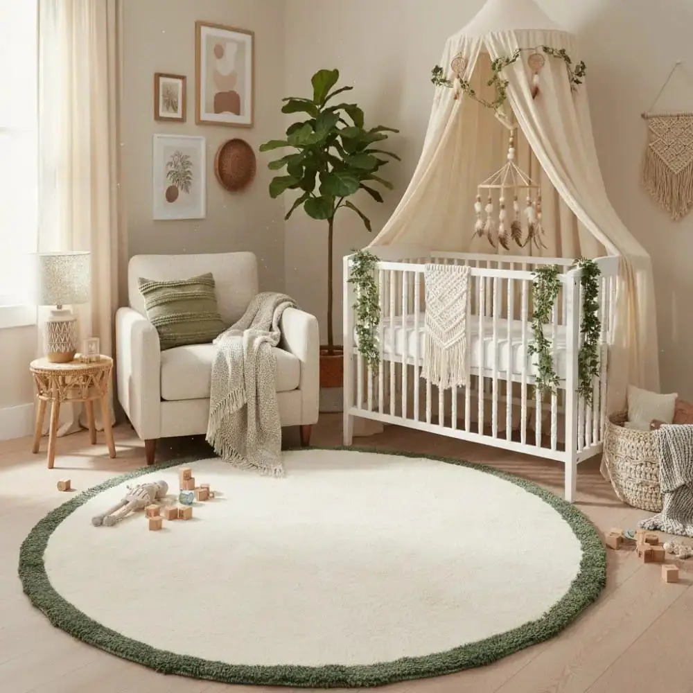 Functional Art: While traditional Beni Ourains are typically rectangular, this round design is a stunning adaptation that creates a grounding, organic focal point in nurseries, bedrooms, or living spaces.