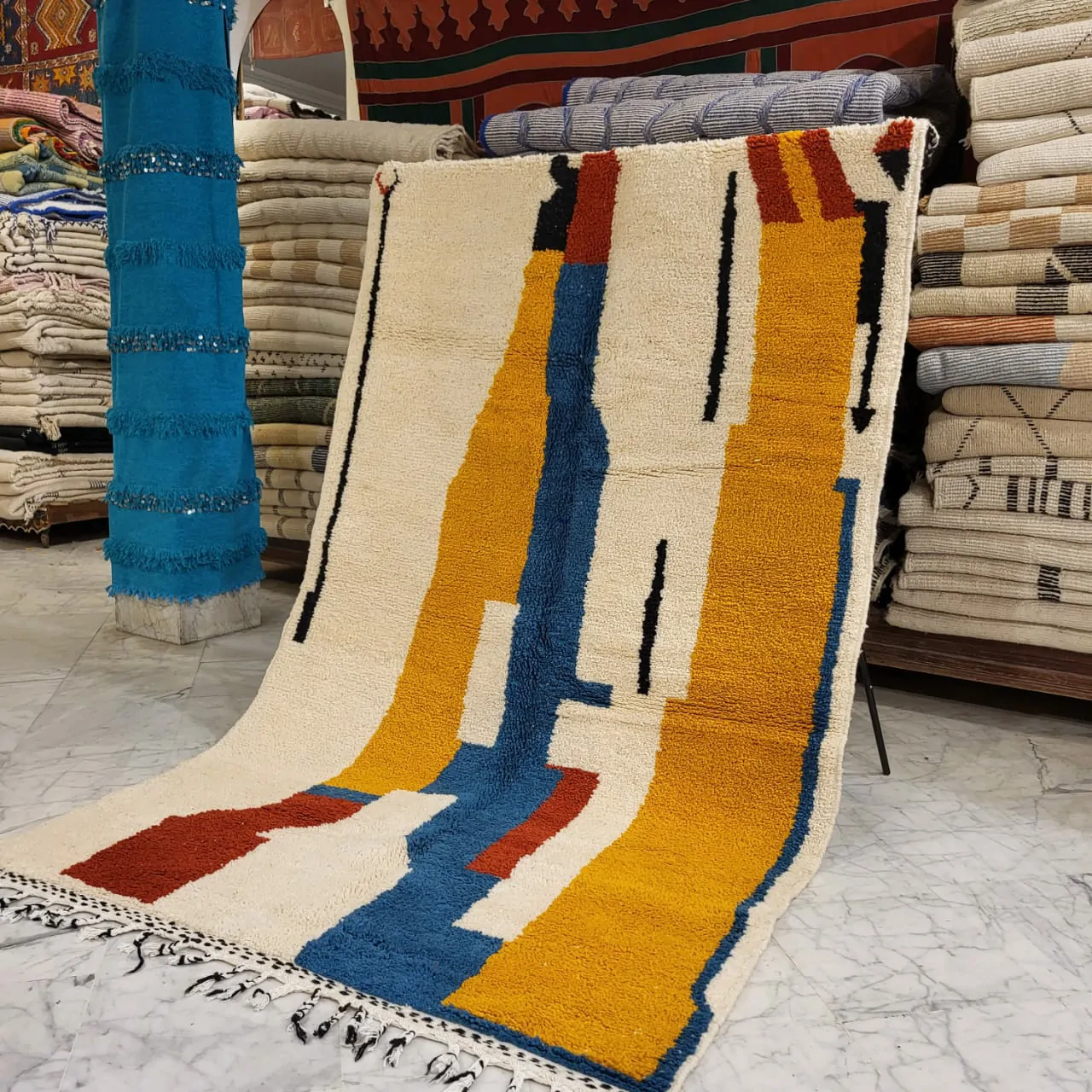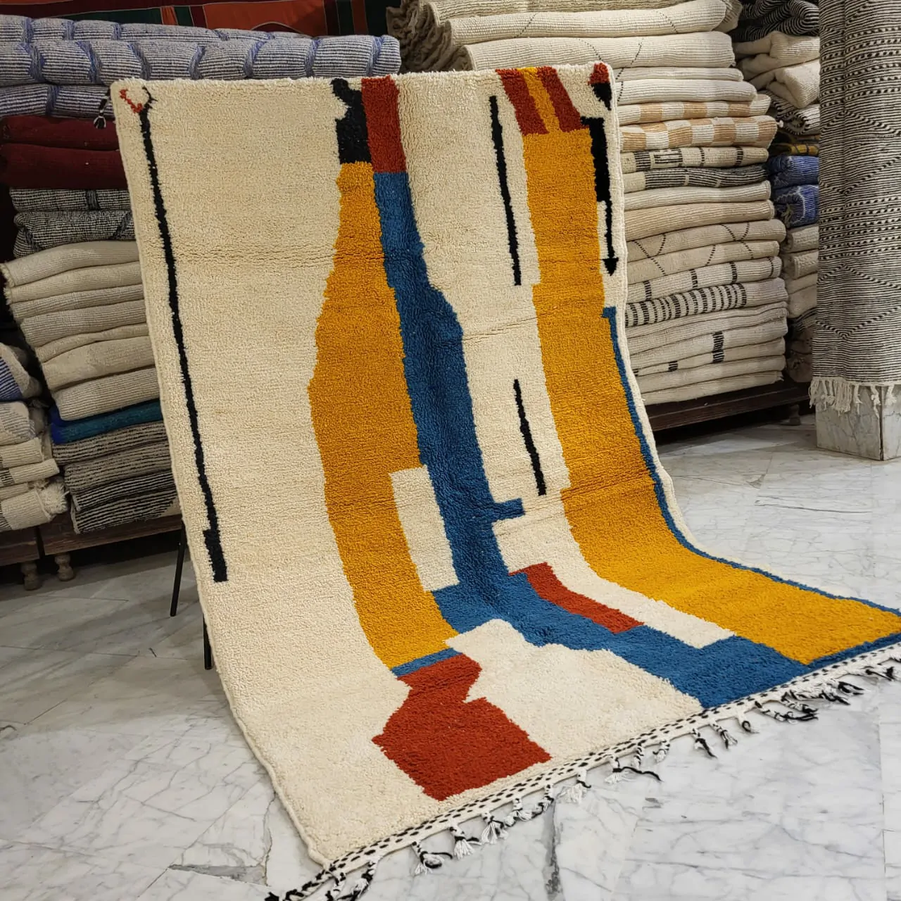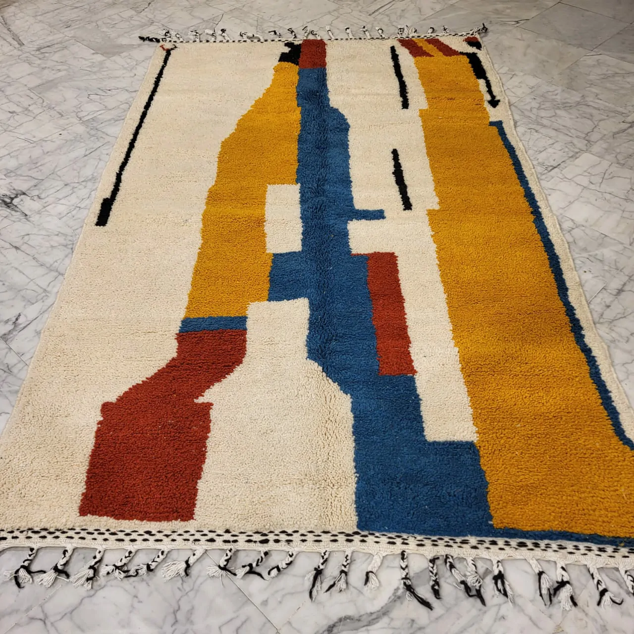 Shag Abstract Moroccan Beni Ourain Berber Rug 5’x8′