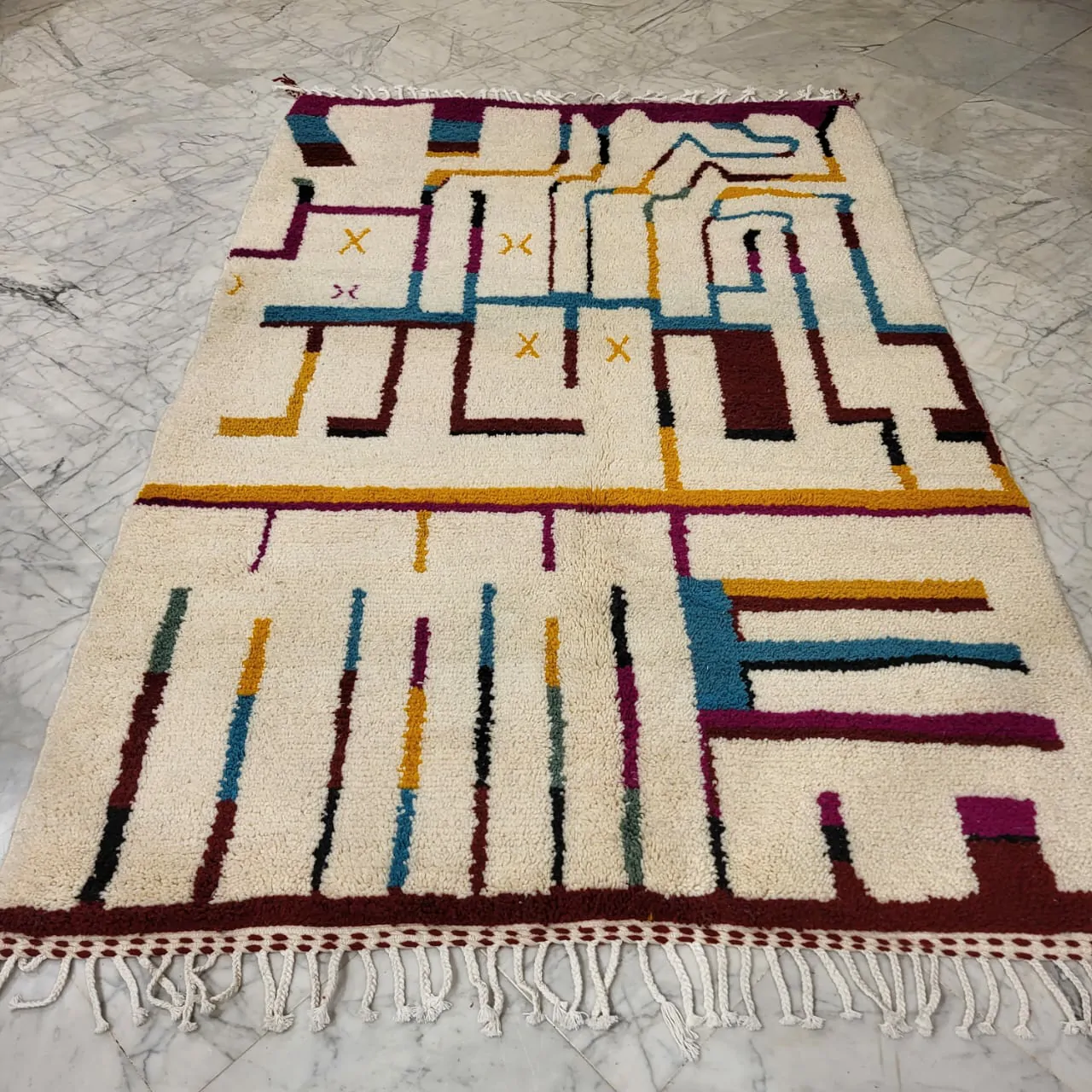 Shag Abstract Moroccan Beni Ourain Berber Rug 5’x8′