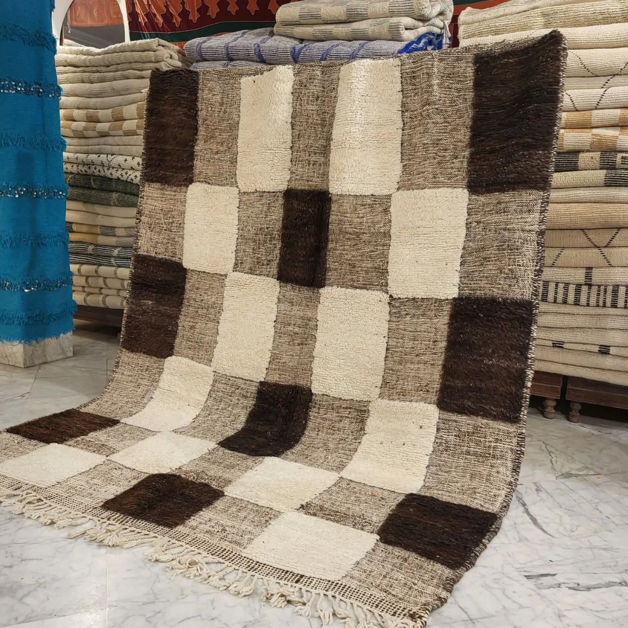 Shag Checkered Moroccan Wool Rug 7’x10′
