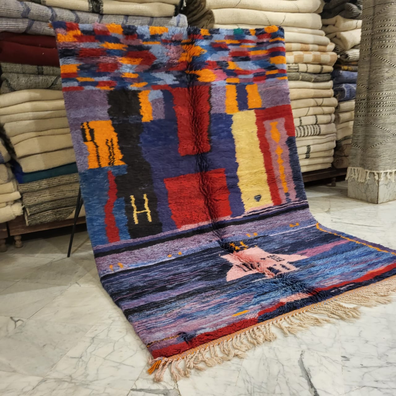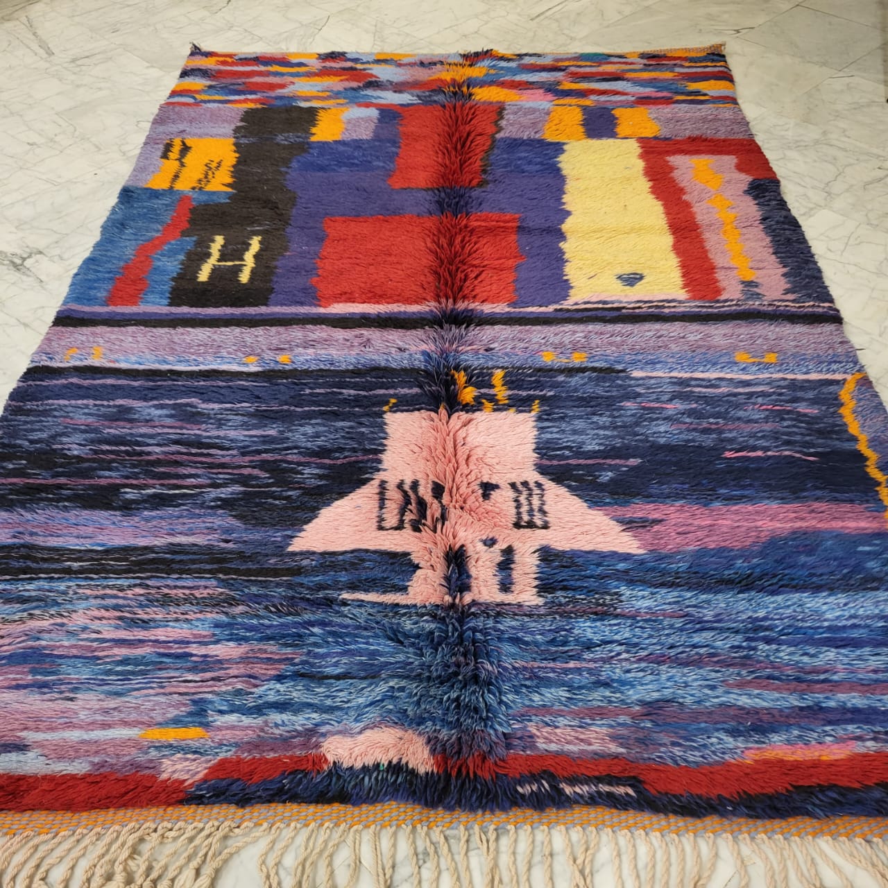 Technique: Hand-Knotted by the women of the Beni Ourain tribe.