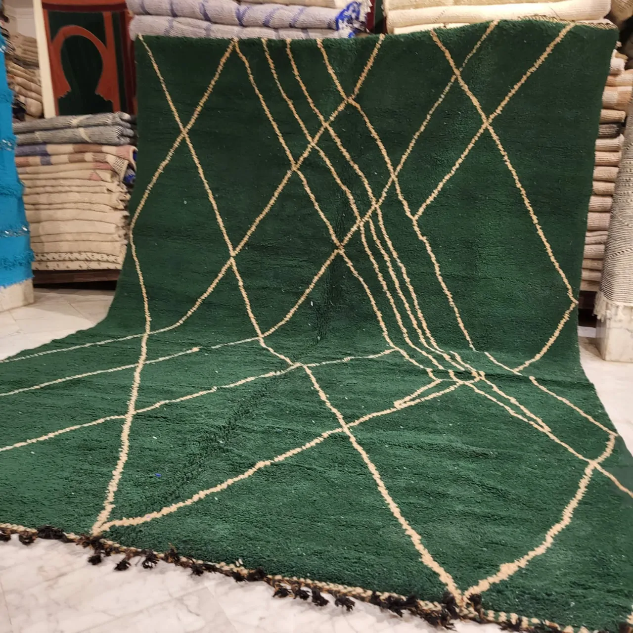 Shag Moroccan Beni Ourain Rug Green 10’x14′