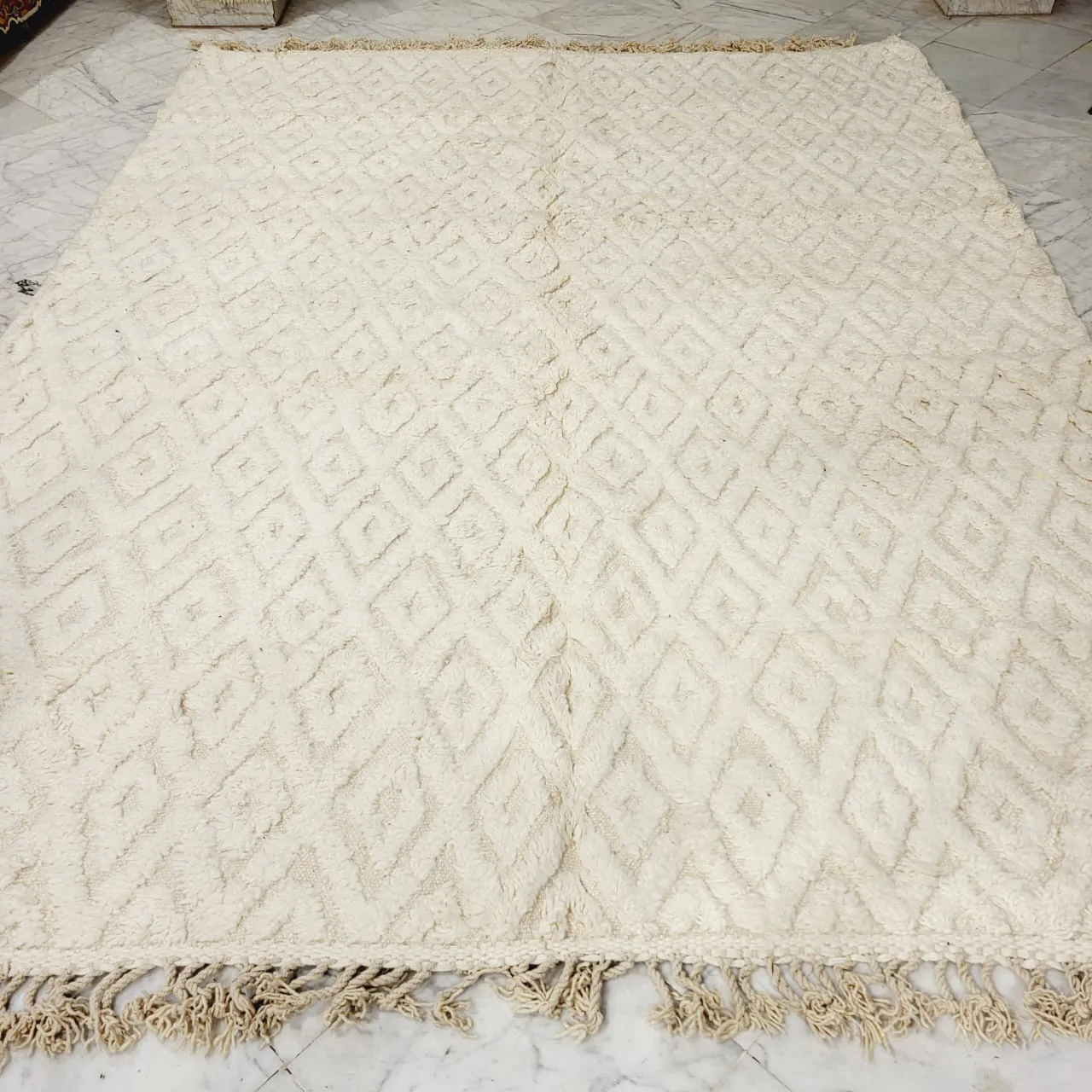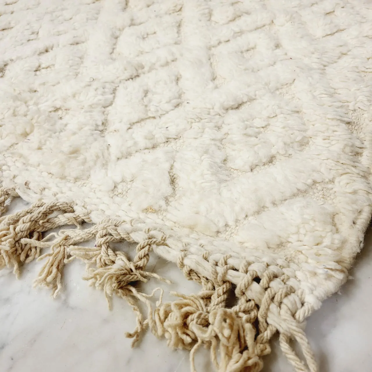 Shag Moroccan Beni Ourain Rug White 8’x11′