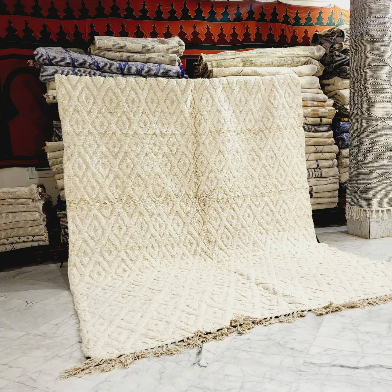 Technique: Hand-Knotted by the women of the Beni Ourain tribe.