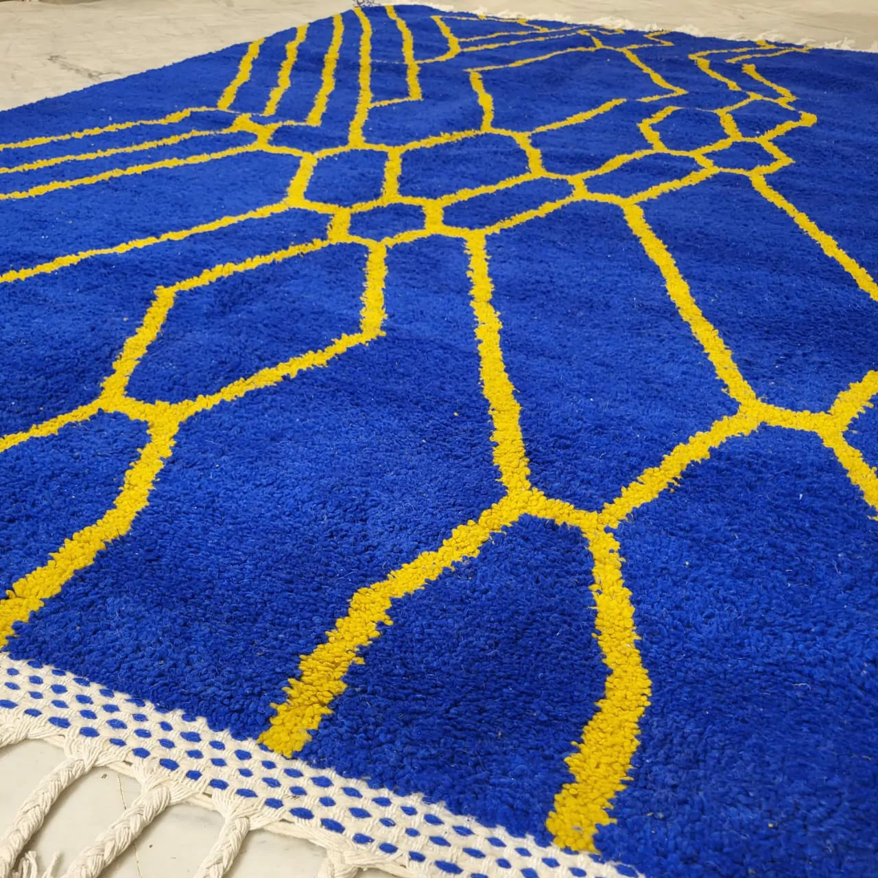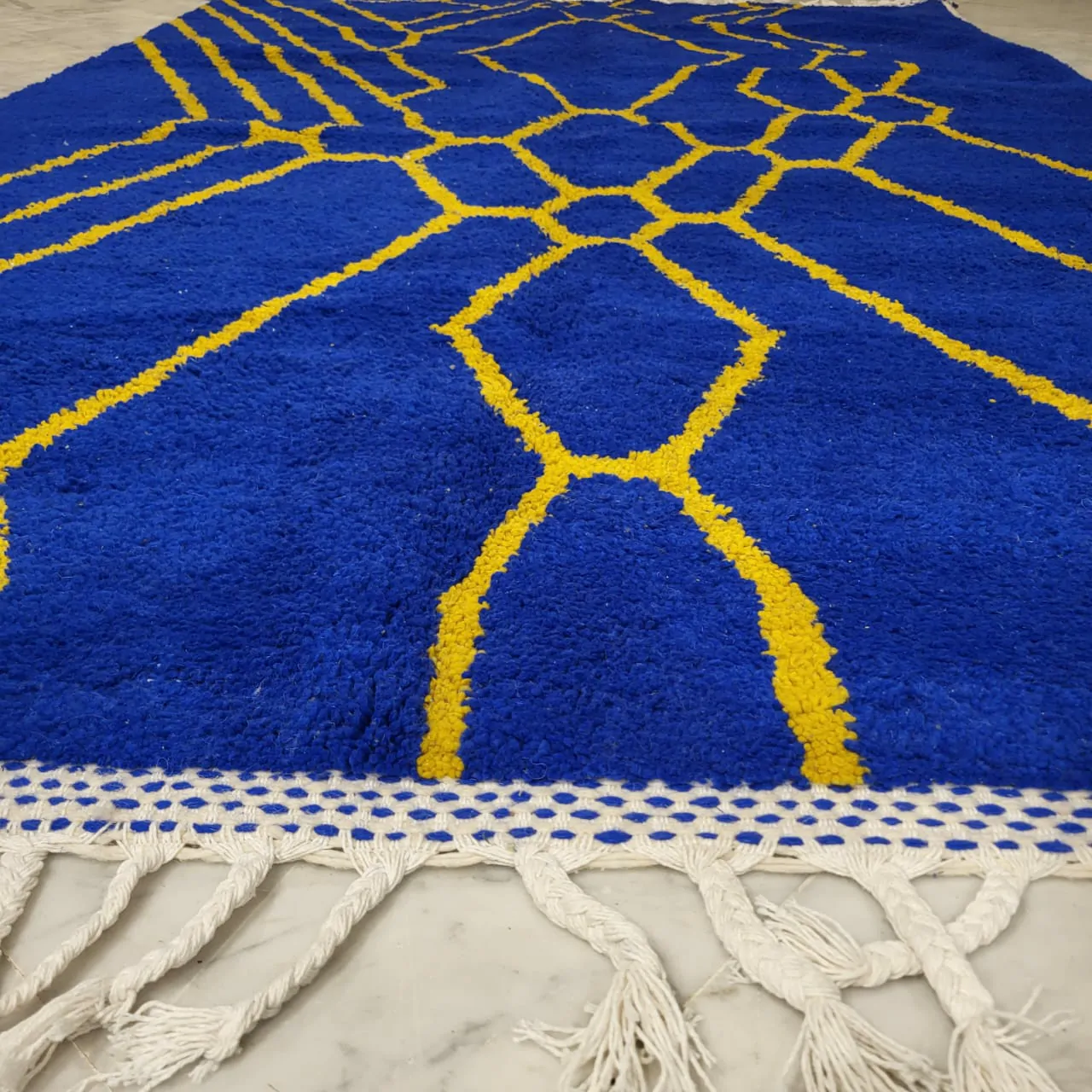 Shag Moroccan Beni Ourain Wool Rug Blue 7’x11′