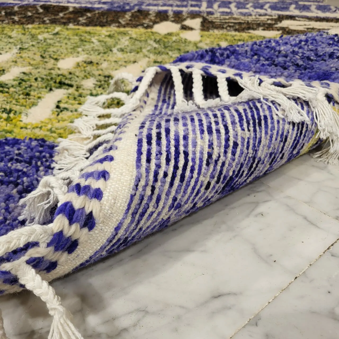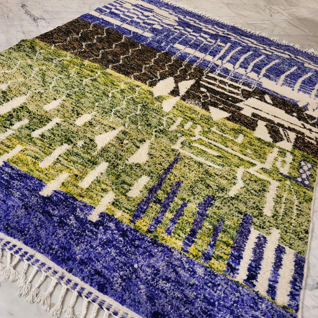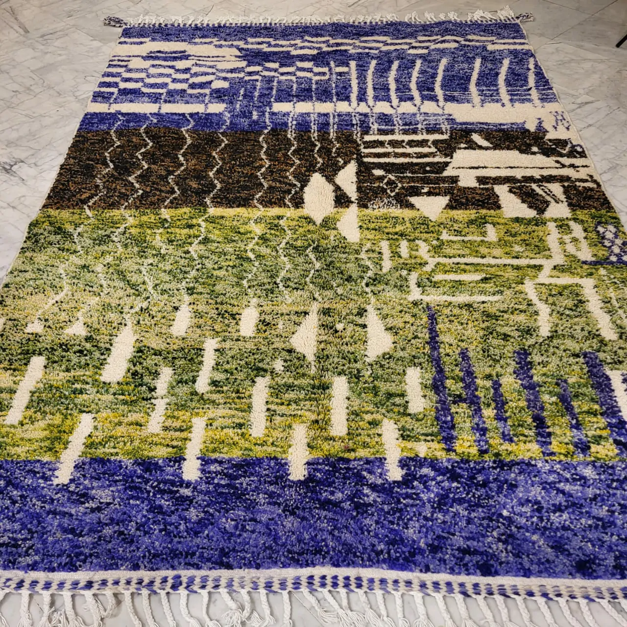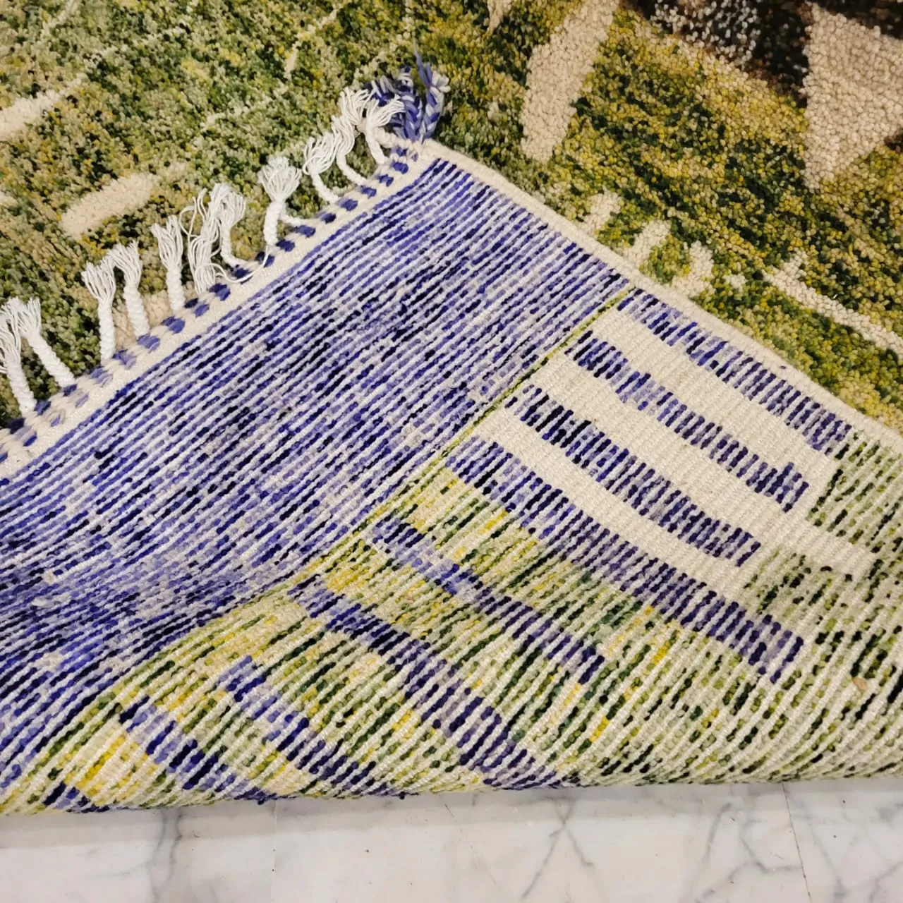 Shag Moroccan Beni Ourain Wool Rug Green and Blue 7’x10′
