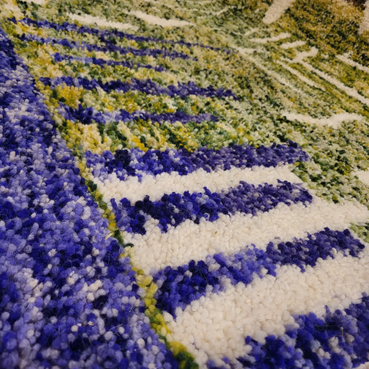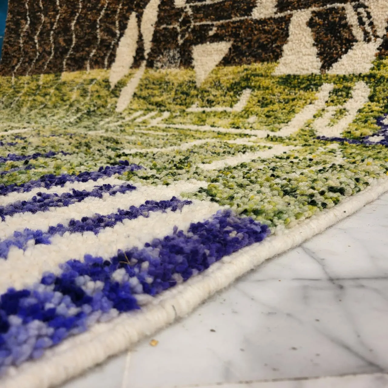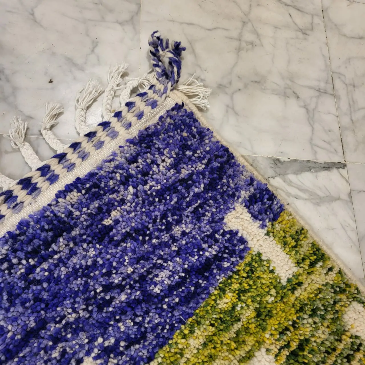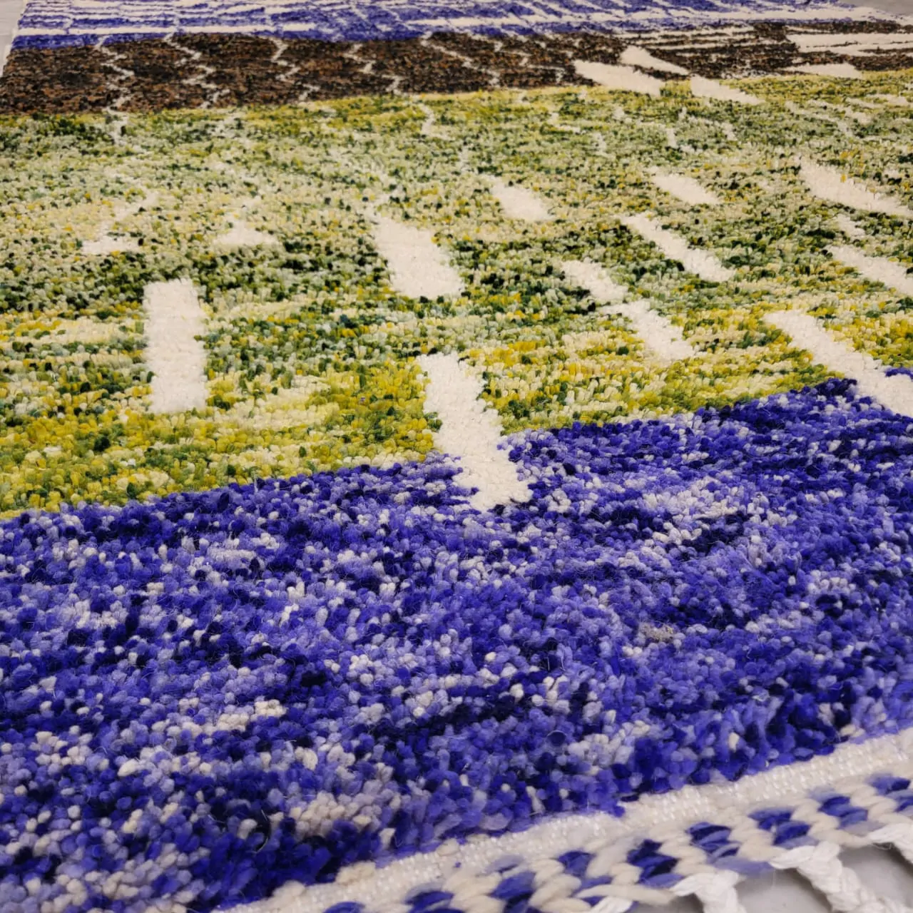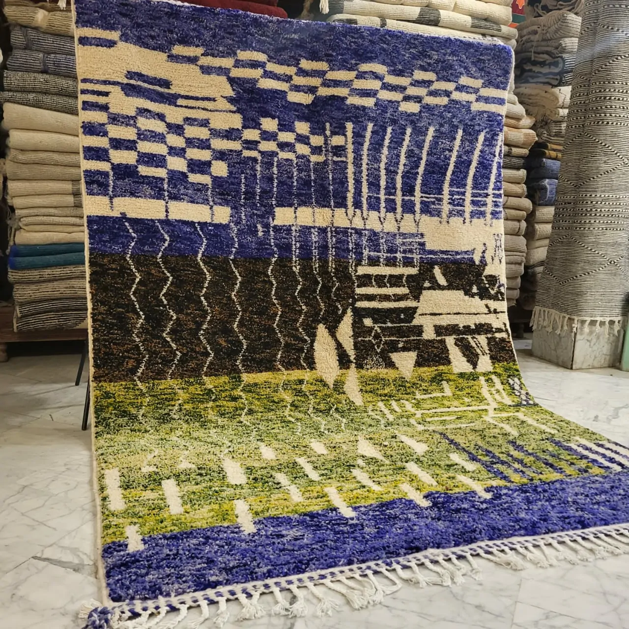 Shag Moroccan Beni Ourain Wool Rug Green and Blue 7’x10′