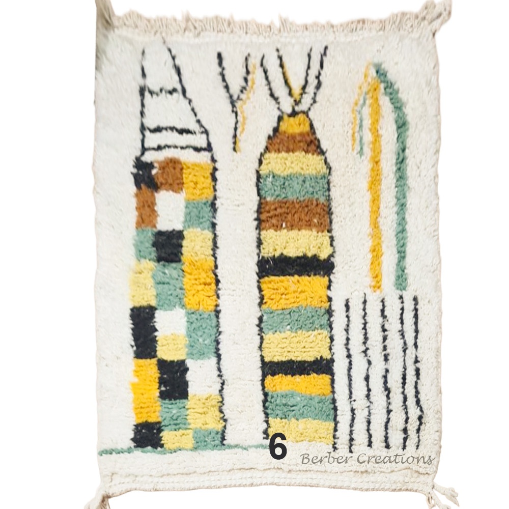 Each carpet is one-of-a-kind and of outstanding quality. They are handwoven and designed by women in our Berber tribes using the finest quality natural wools, native dyes as well as organic cleans.