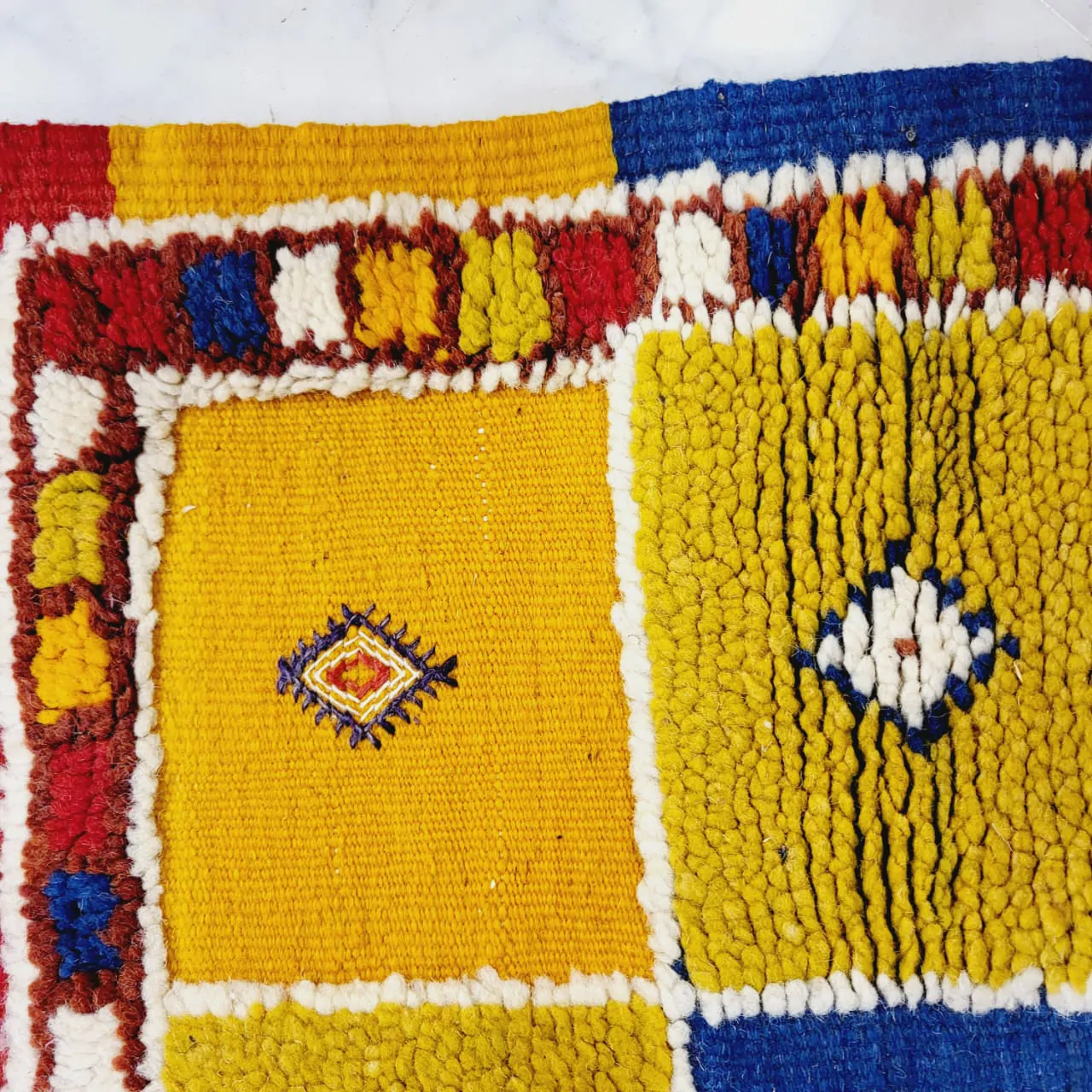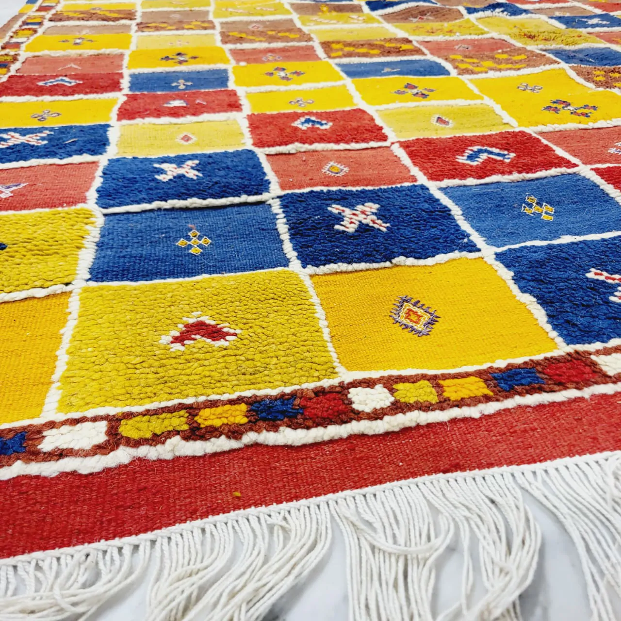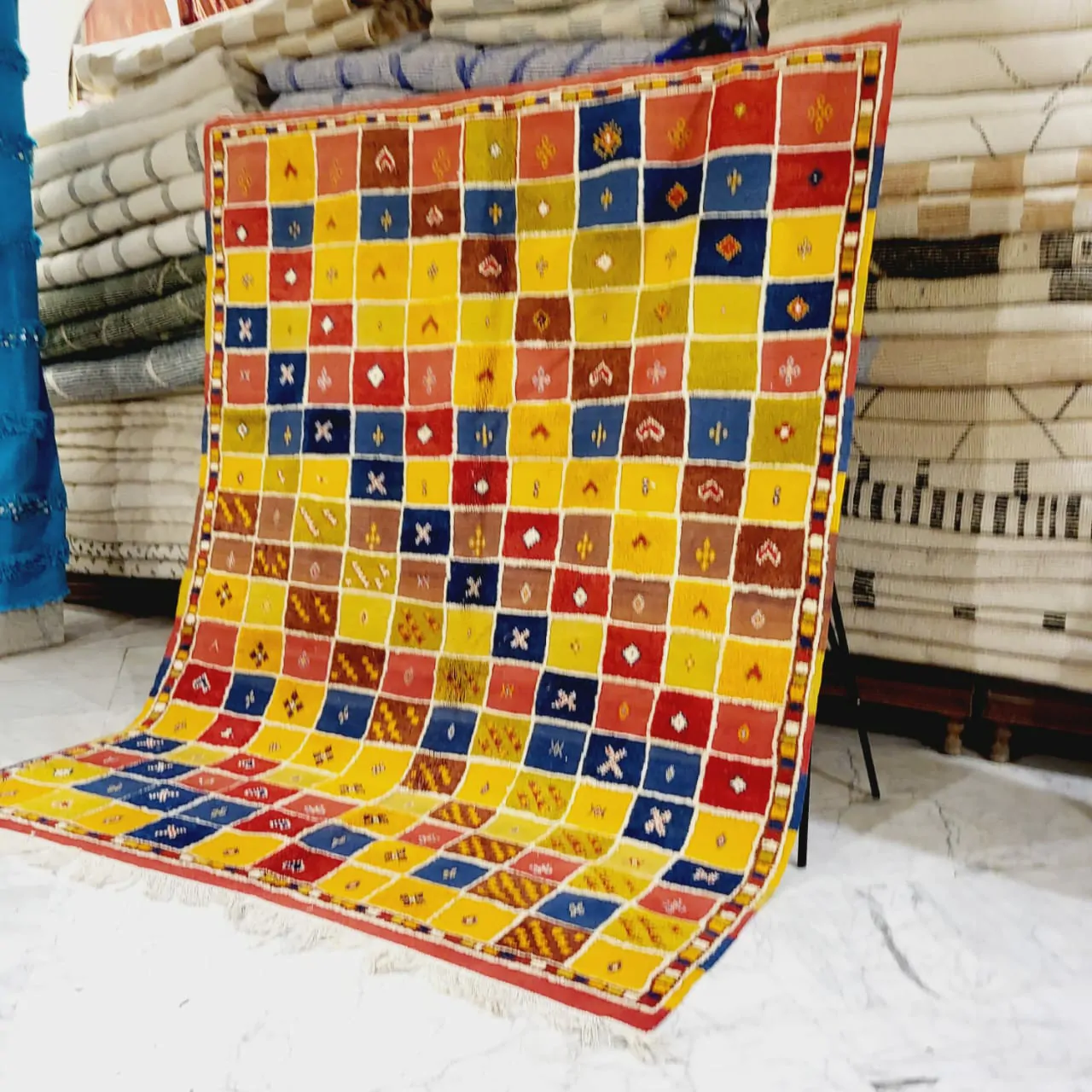 Introducing our Taznakht Rug – a cultural masterpiece deeply woven into the identity of Taznakhte. More than an artisanal product, it reflects a centuries-old tradition, mirroring a lifestyle in vibrant colors and captivating images.