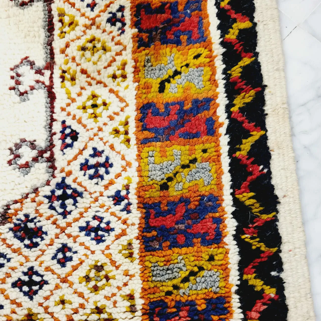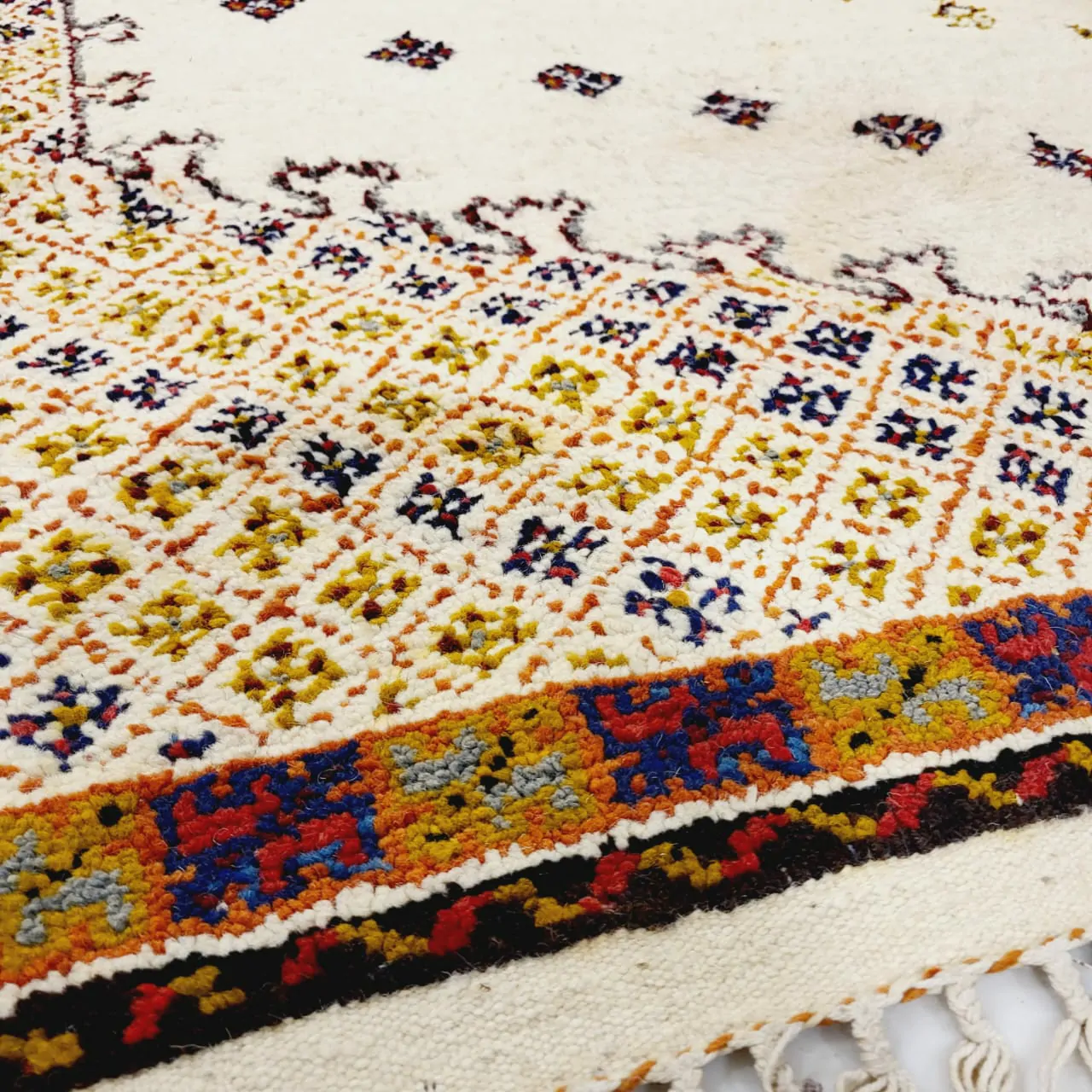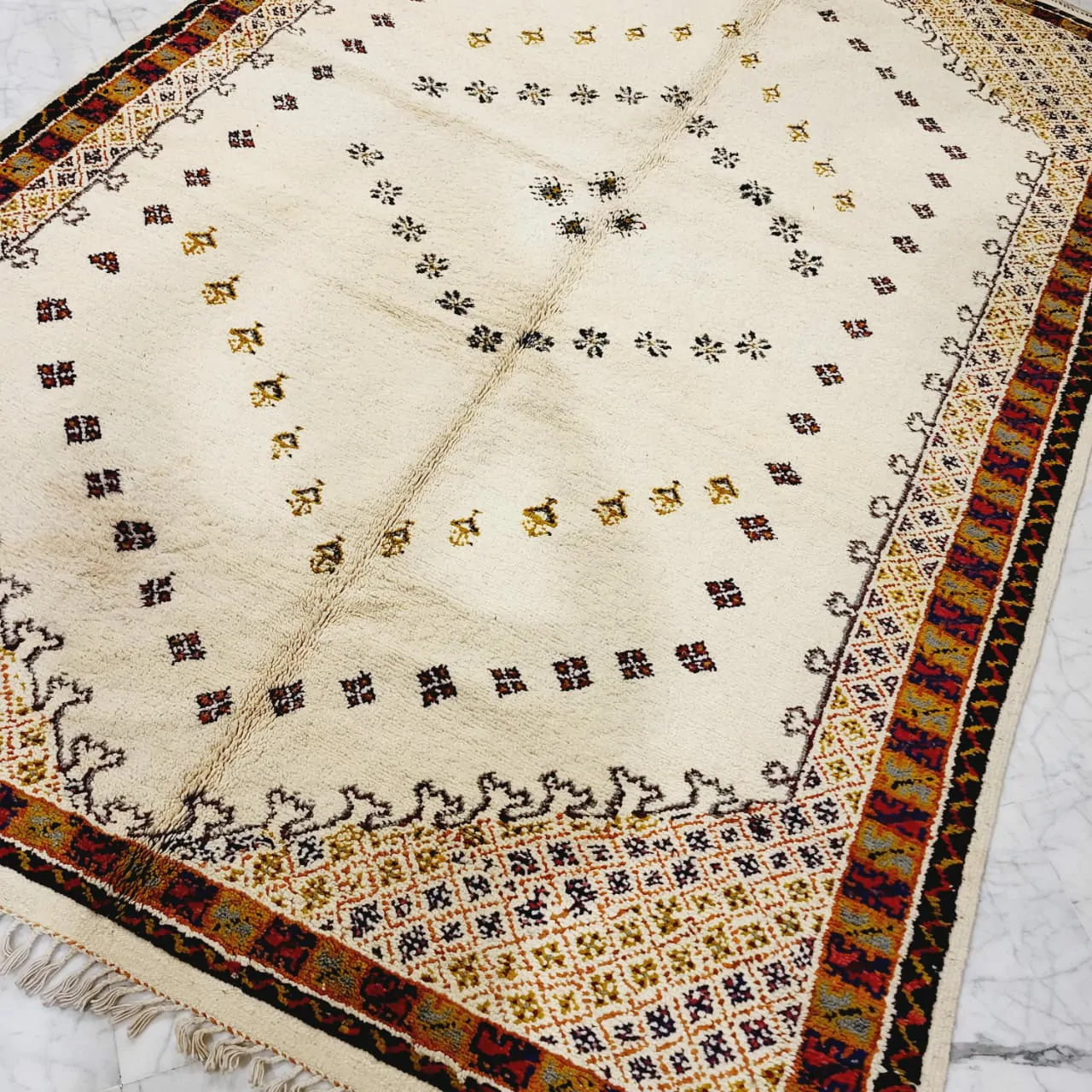 Introducing our Taznakht Rug – a cultural masterpiece deeply woven into the identity of Taznakhte. More than an artisanal product, it reflects a centuries-old tradition, mirroring a lifestyle in vibrant colors and captivating images.