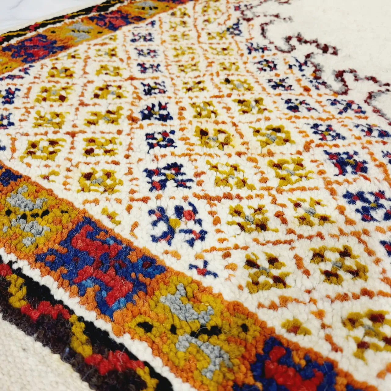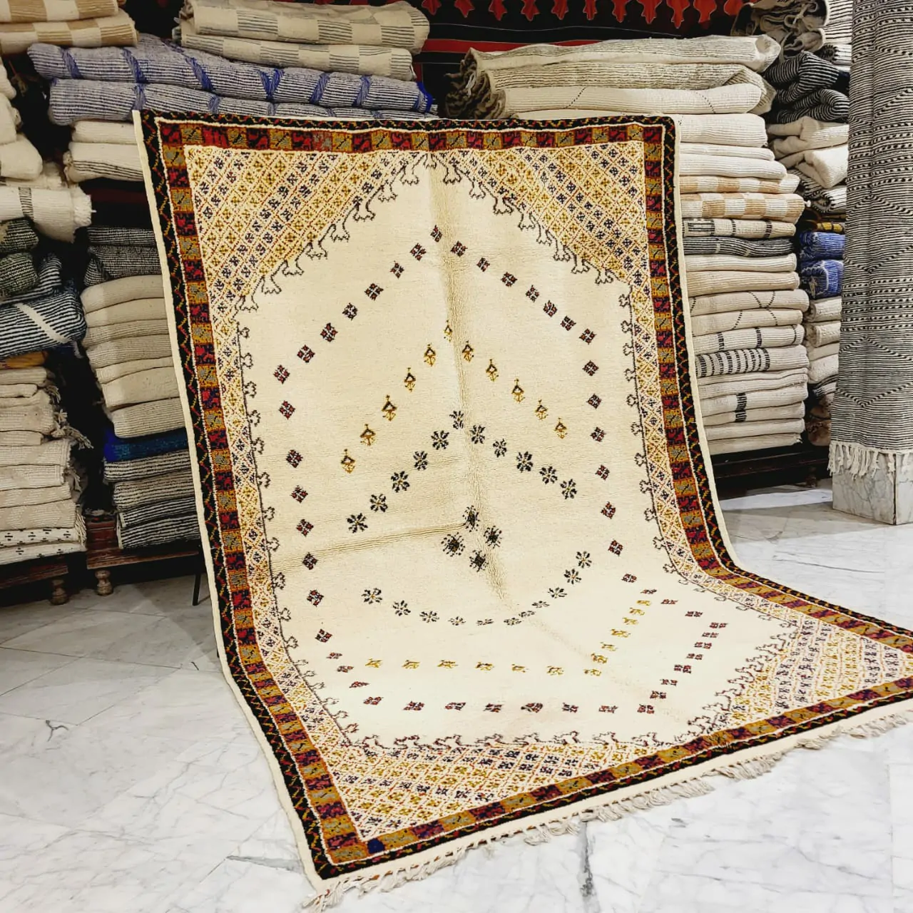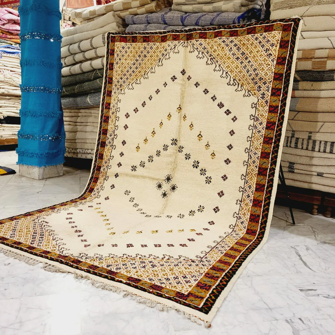 Introducing our Taznakht Rug – a cultural masterpiece deeply woven into the identity of Taznakhte. More than an artisanal product, it reflects a centuries-old tradition, mirroring a lifestyle in vibrant colors and captivating images.